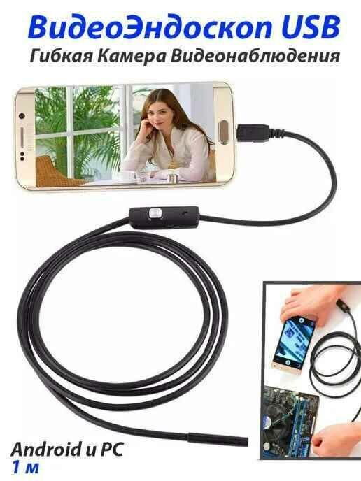 Эндоскоп для Android и ПК, USB-камера для труднодоступных мест, гибкая камера видеонаблюдения 1 м от Shark-Shop интересное: