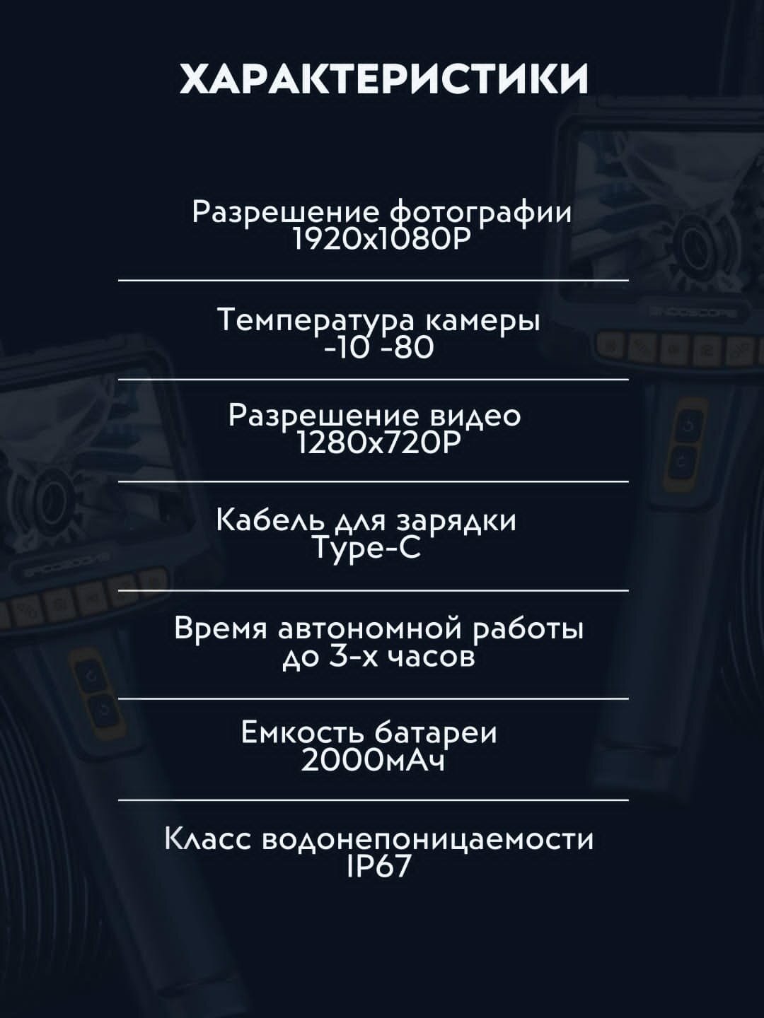 Промышленный видео-эндоскоп с двойной камерой KM-10: зонд 5м/двойной объектив 8 мм/2 Мп/экран IPS 5"/вращение 360°/IP67. интересное: