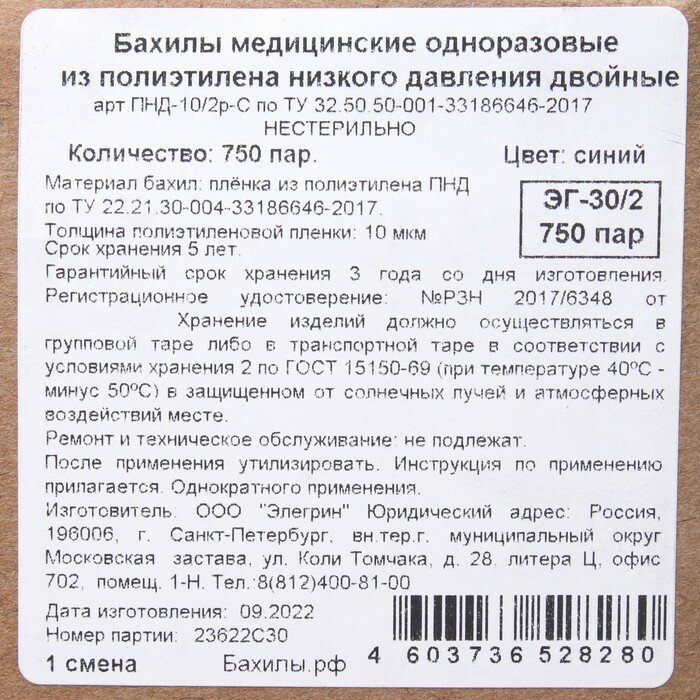 Бахилы медицинские Elegreen Прочные с двойной резинкой , синие в евроблоке 3 гр. 20 мкм, 750 штук интересное: