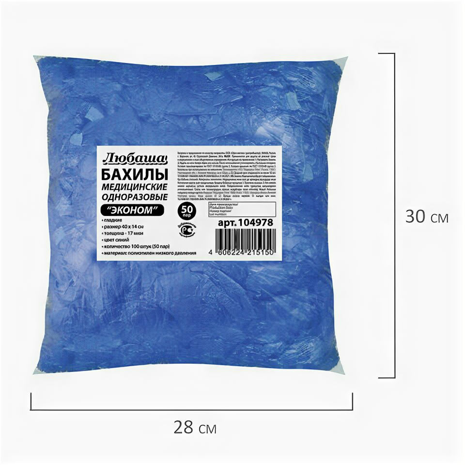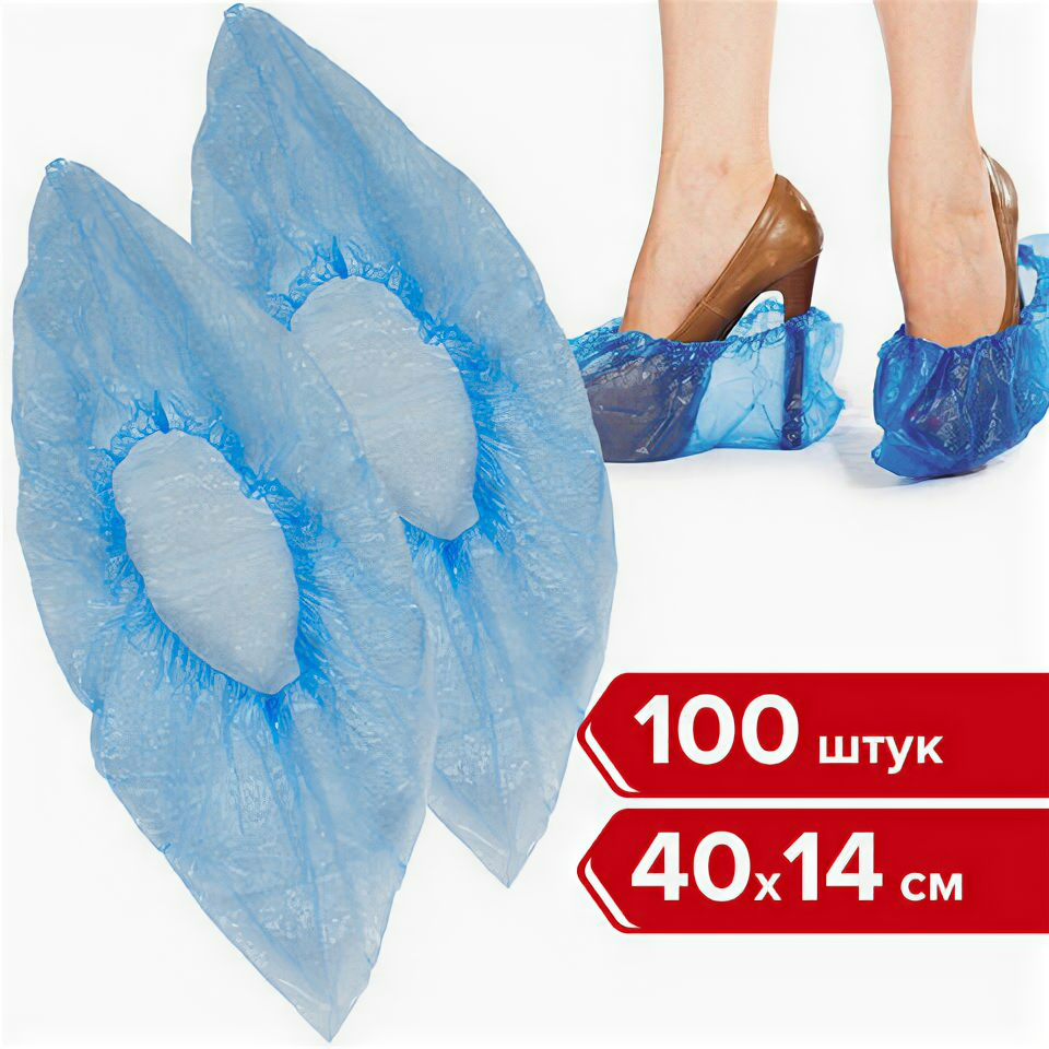Лайма Бахилы комплект 50 штук (25 пар), комплект 5 шт., двойные (со стелькой), 40х14 см, 80 мкм, 6.5 г, ПНД, LAIMA, 104982