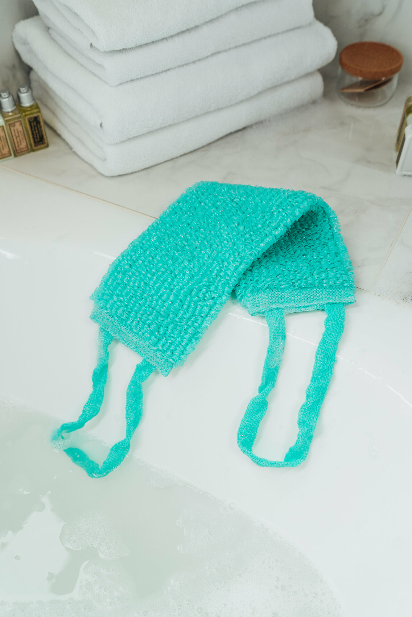 Ниже Вы можете прочитать отзывы на Мочалка для душа бирюзовая с ручками для спины вязанная из полипропиленовых нитей, ознакомится с подробными характеристиками, посмотреть интересные обзоры и фотографии на Мочалка для душа бирюзовая с ручками для спины вязанная из полипропиленовых нитей.