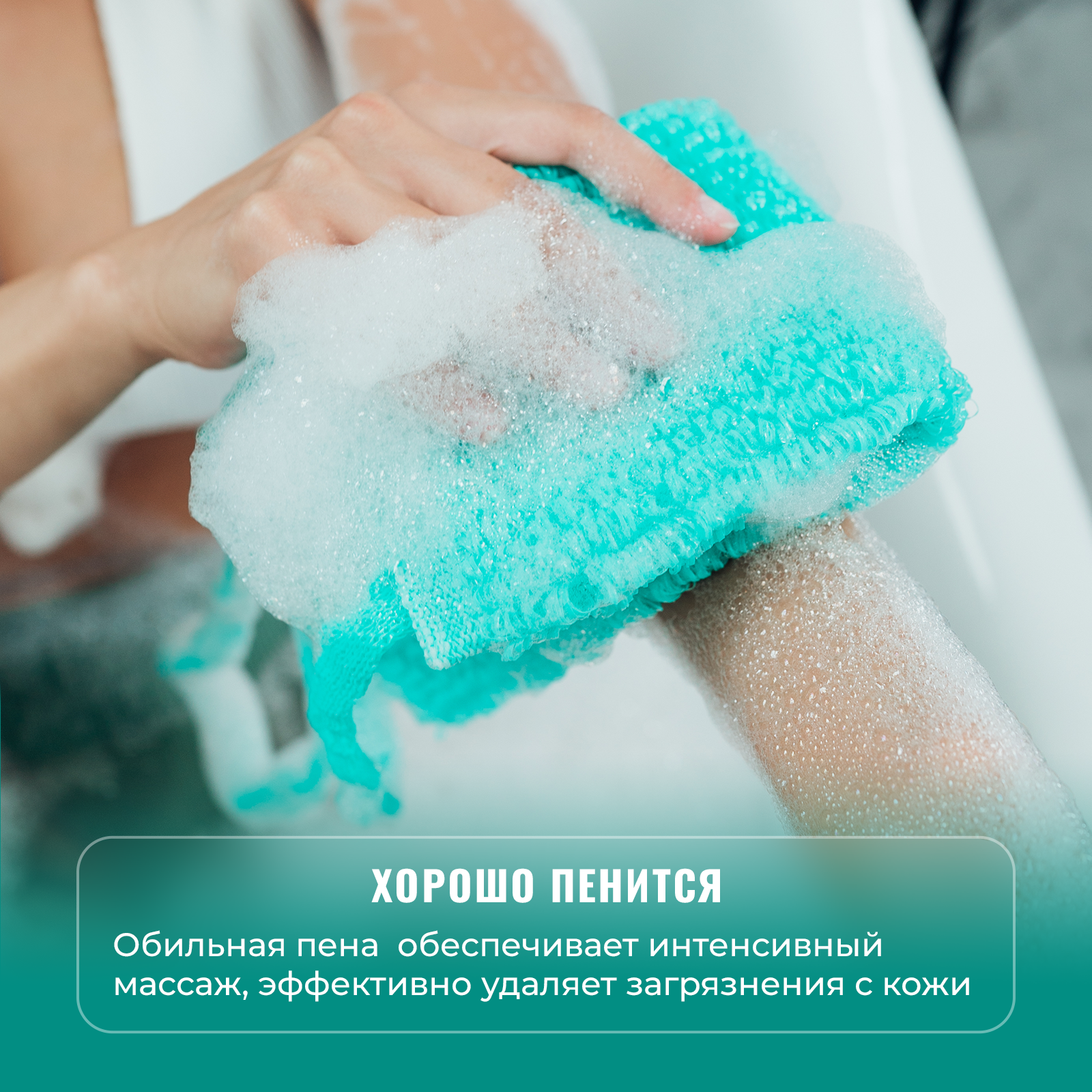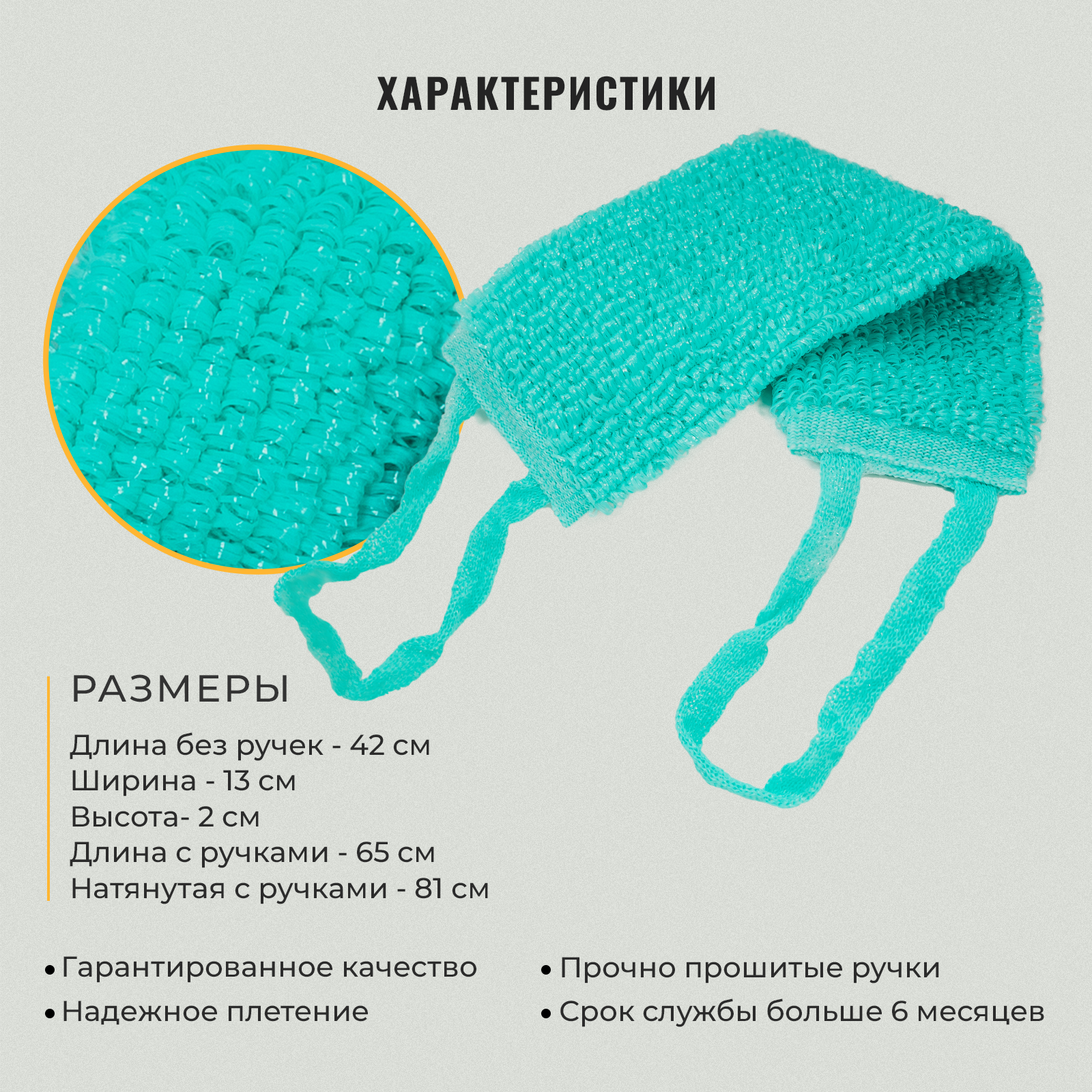 Мочалка для душа бирюзовая с ручками для спины вязанная из полипропиленовых нитей интересное: