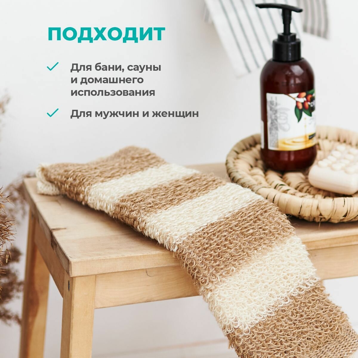 Мочалка натуральная длинная жесткая для тела для бани и сауны VIVAL интересное: