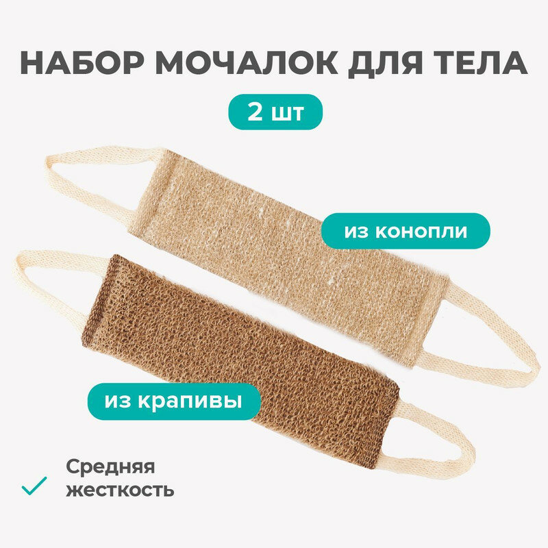 VIVAL Набор мочалок для душа из натурального волокна и крапивы 2 шт интересное: