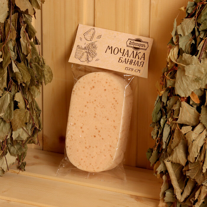 Мочалка банная 15х9 см бежевая "Добропаровъ" на подвесе интересное: