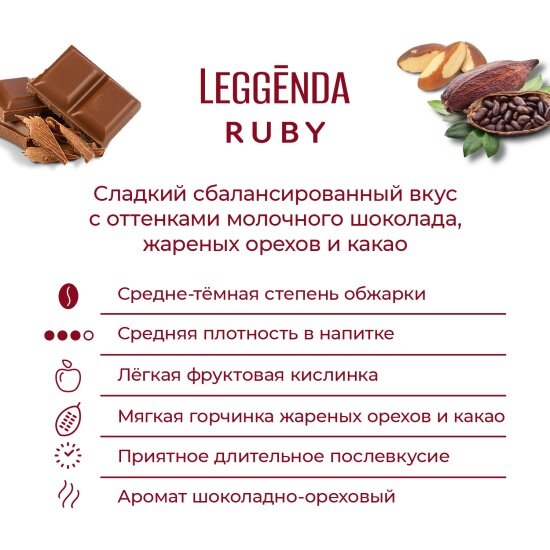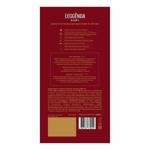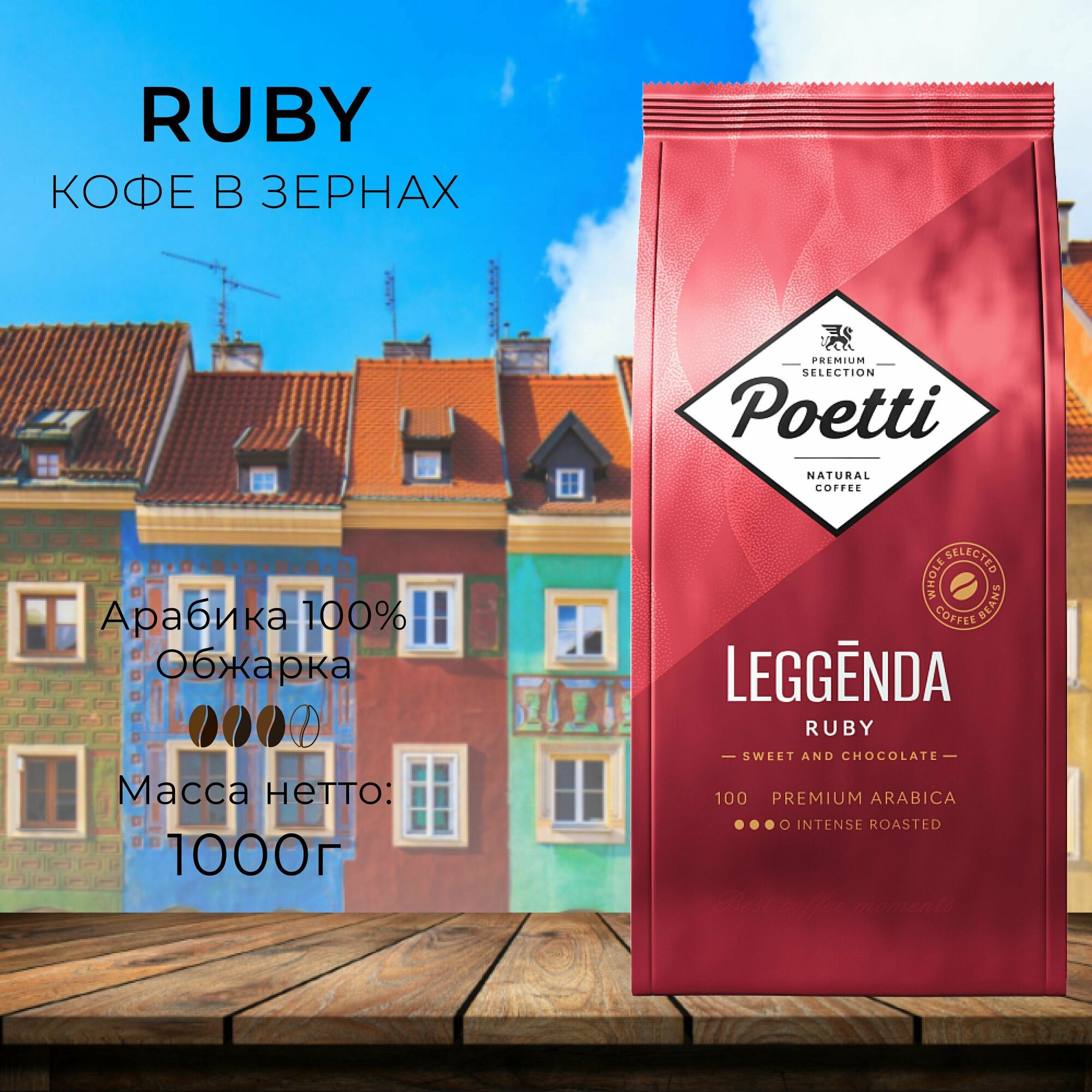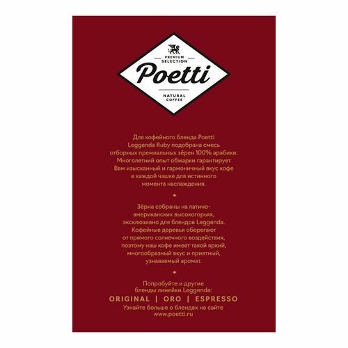 Кофе Poetti "Legenda Ruby", в зернах, арабика, средняя обжарка, вакуумная упаковка, 1 кг