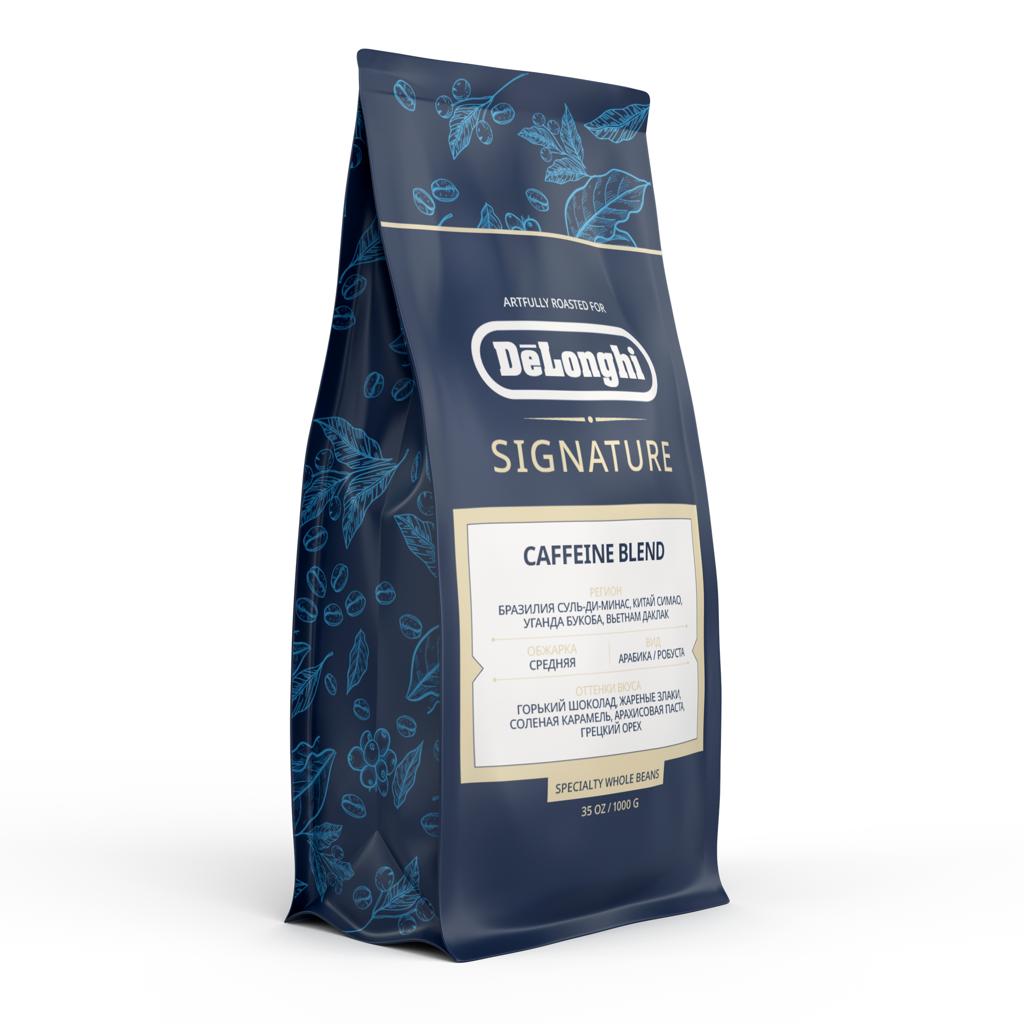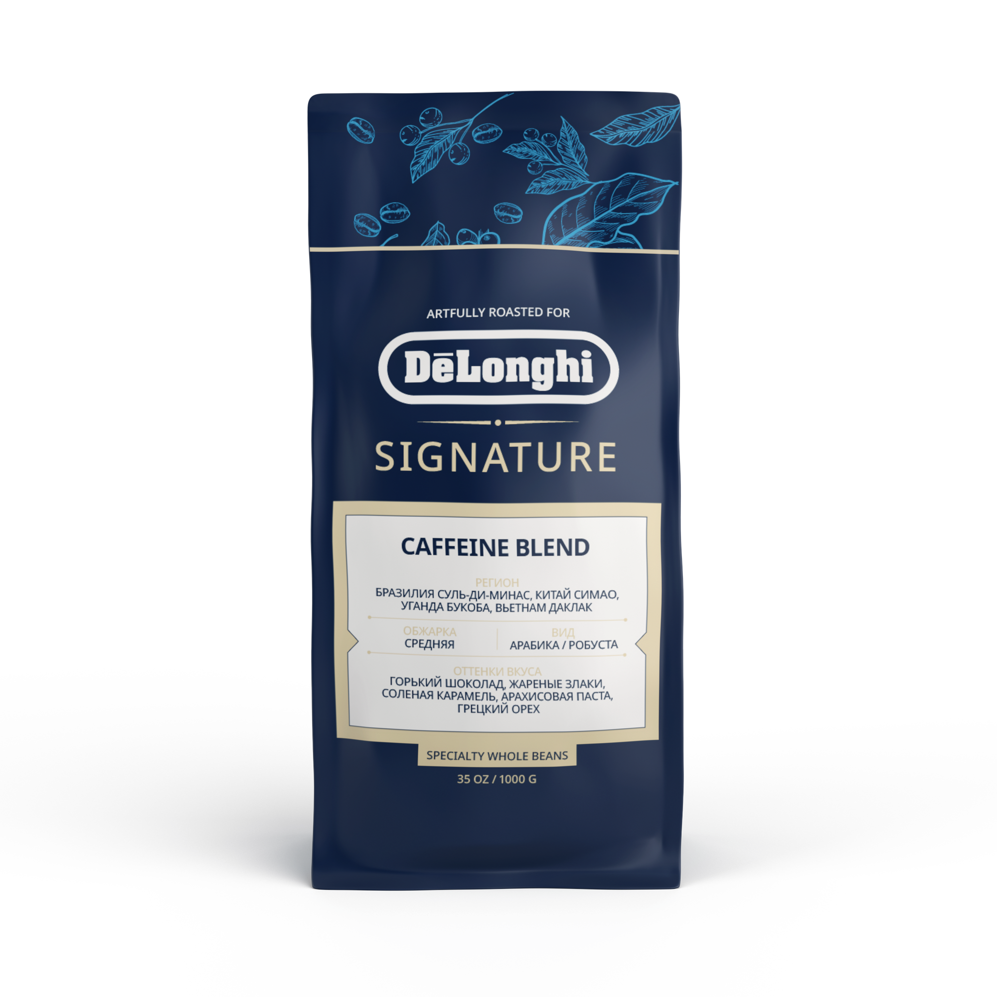 Кофе в зернах Delonghi Signature Caffeine Blend 1кг (Тип кофе: Арабика/ Робуста; Бразилия, Китай, Уганда, Вьетнам)