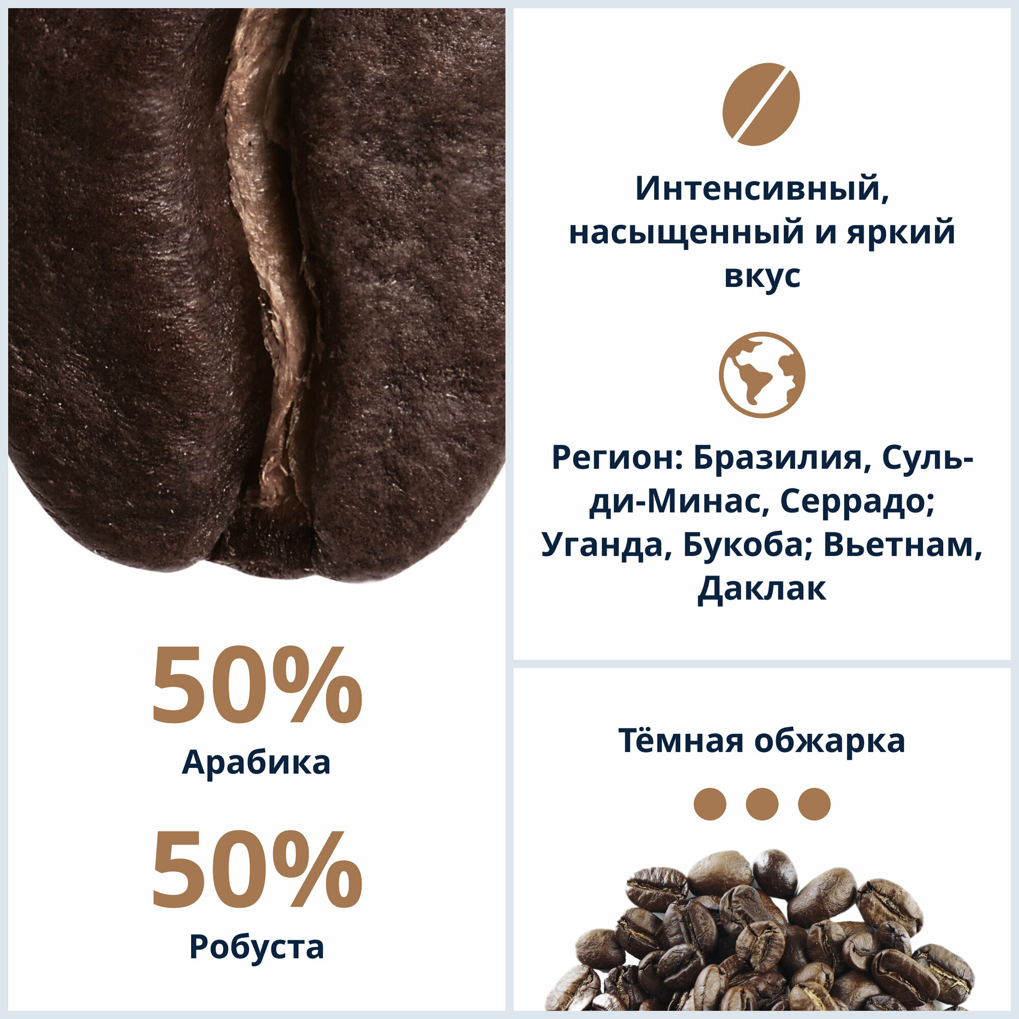| Страна произрастания | Бразилия / Индия / Колумбия / Перу / Эфиопия |