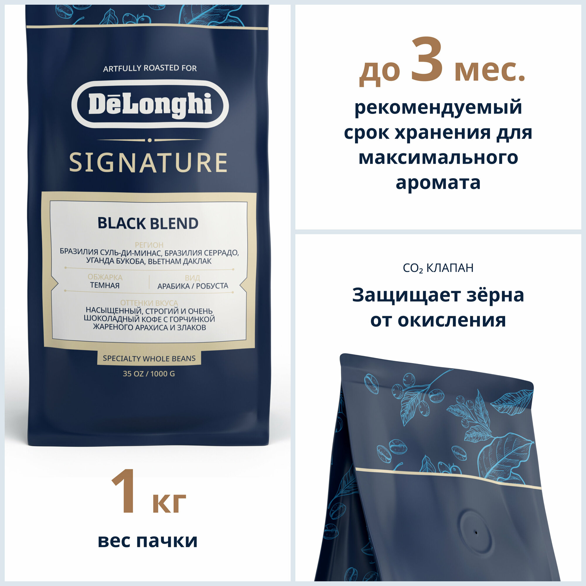 Купить DeLonghi кофе Signature Black 1 кг