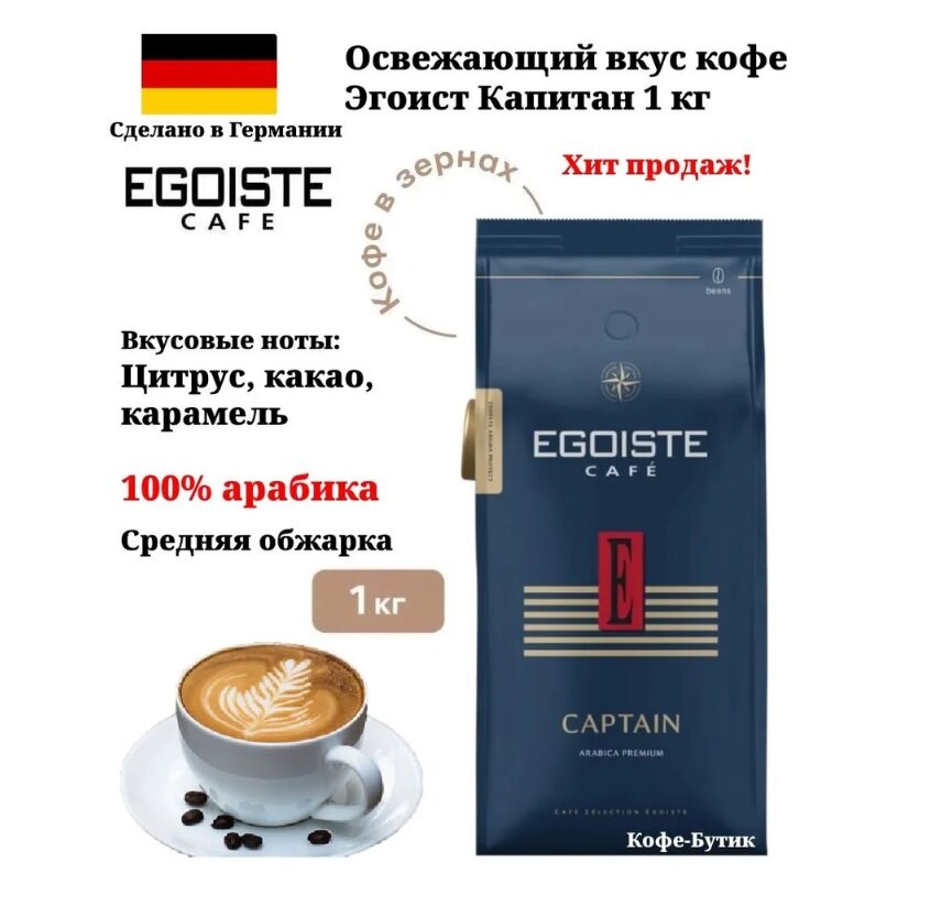 EGOISTE Captain Кофе в зернах полимерная упаковка 1000г. интересное: