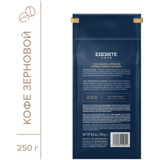 EGOISTE Captain Кофе в зернах полимерная упаковка 250г. интересное: