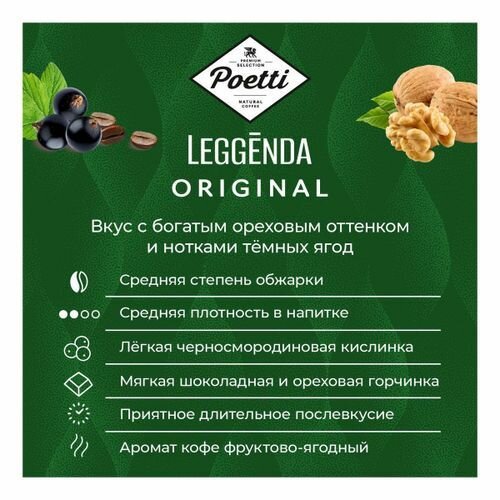 Кофе натуральный жареный в зернах Poetti Leggenda Original 250 гр