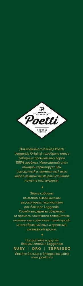 Купить Кофе натуральный жареный в зернах Poetti Leggenda Original 250 гр