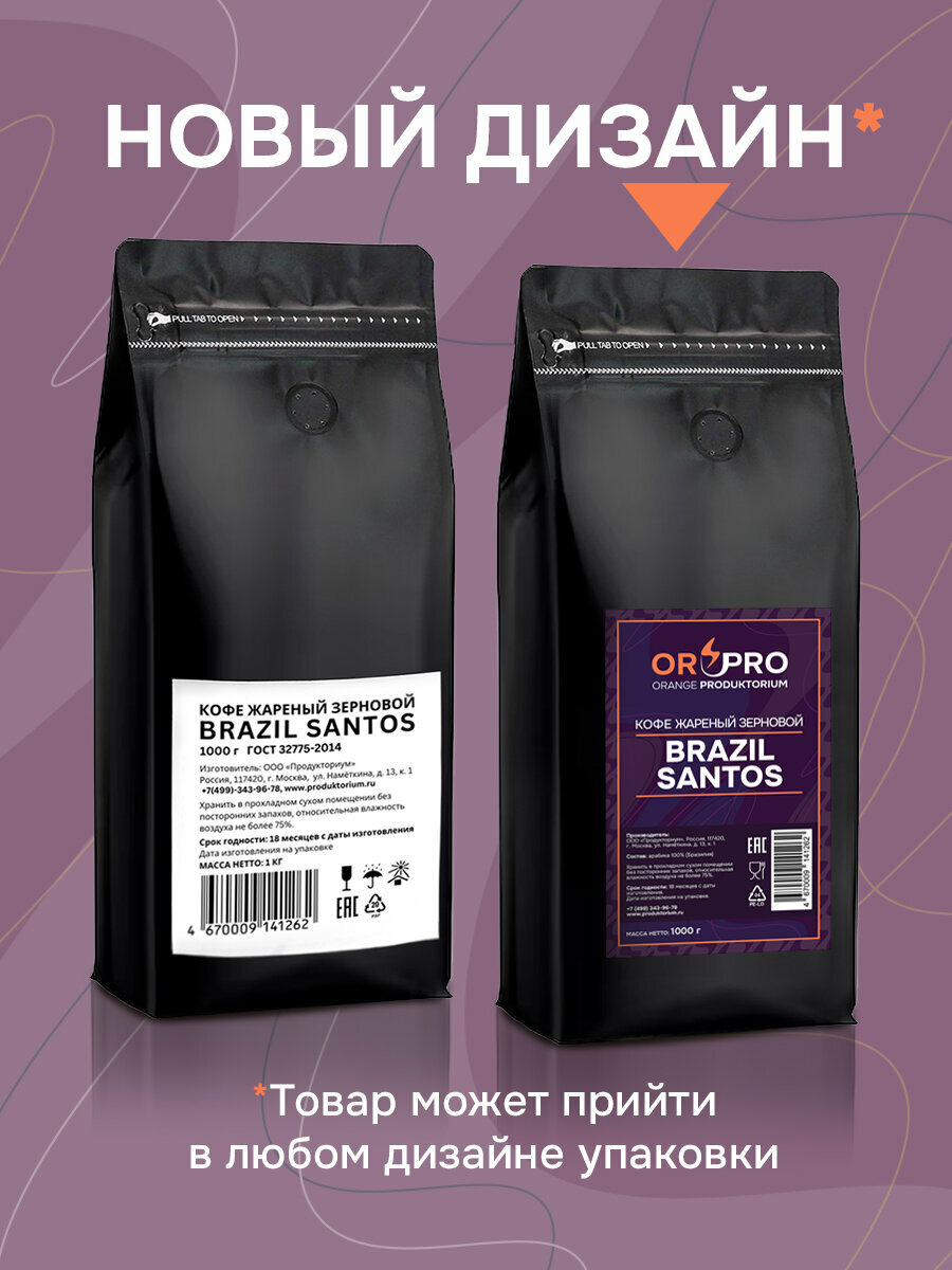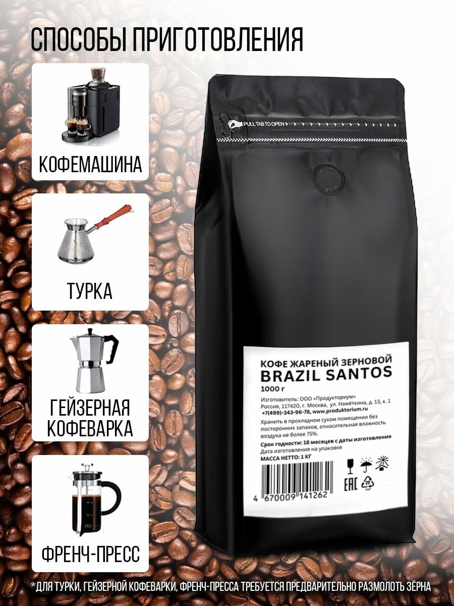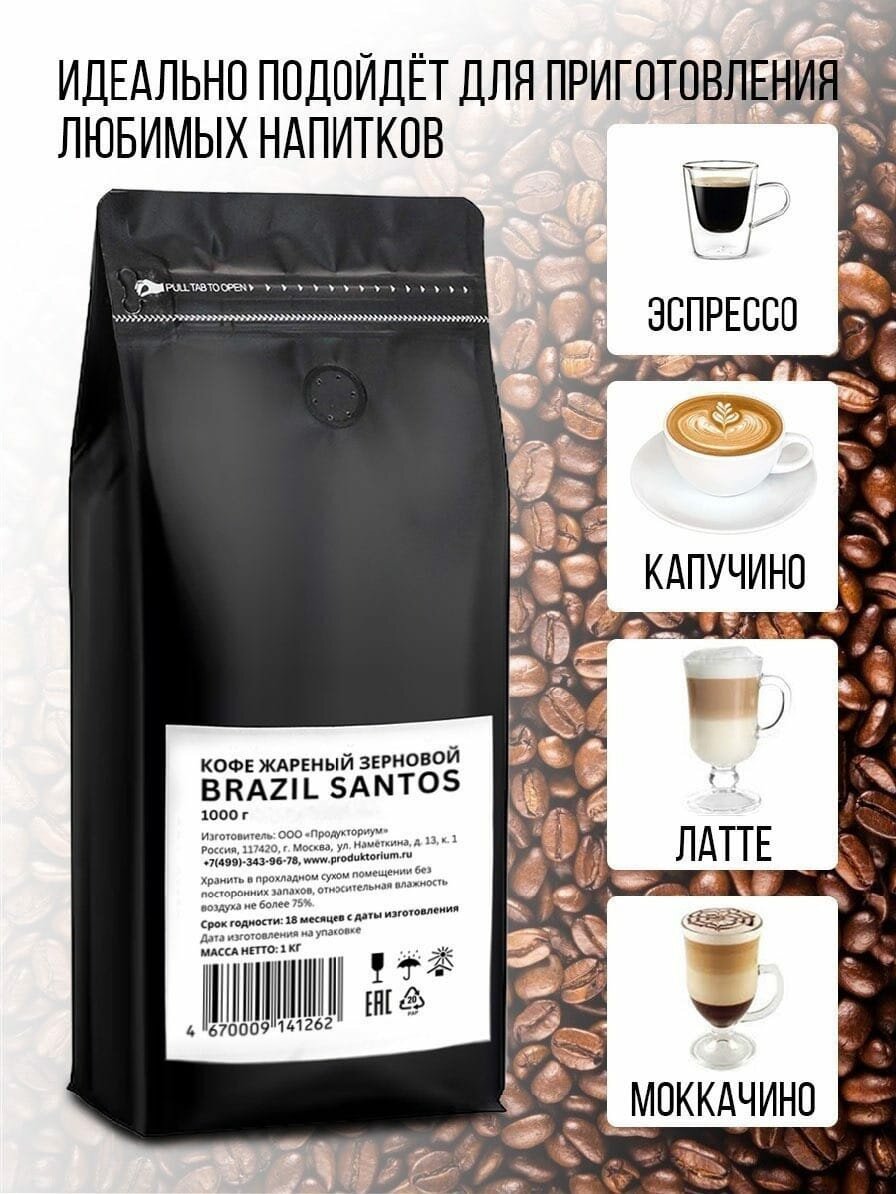 Кофе жареный в зёрнах 100% Арабика "Brazil SANTOS" свежеобжаренный, пакет 1кг интересное: