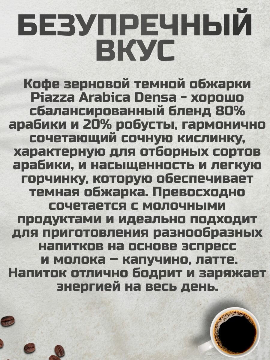 Комплект 5 шт, Кофе в зернах PIAZZA DEL CAFFE "Arabica Densa", натуральный, 1000 г, вакуумная упаковка, 1368-06