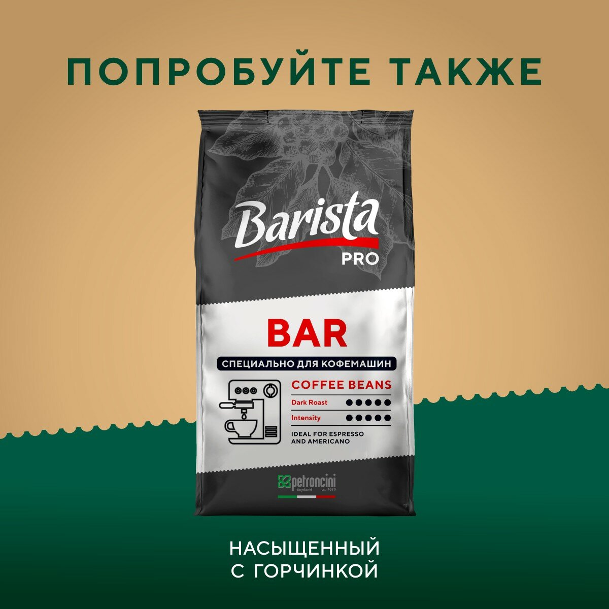 Кофе Barista Pro Italianо, 800г, темная обжарка. Свежеобжаренный кофе арабика/роб