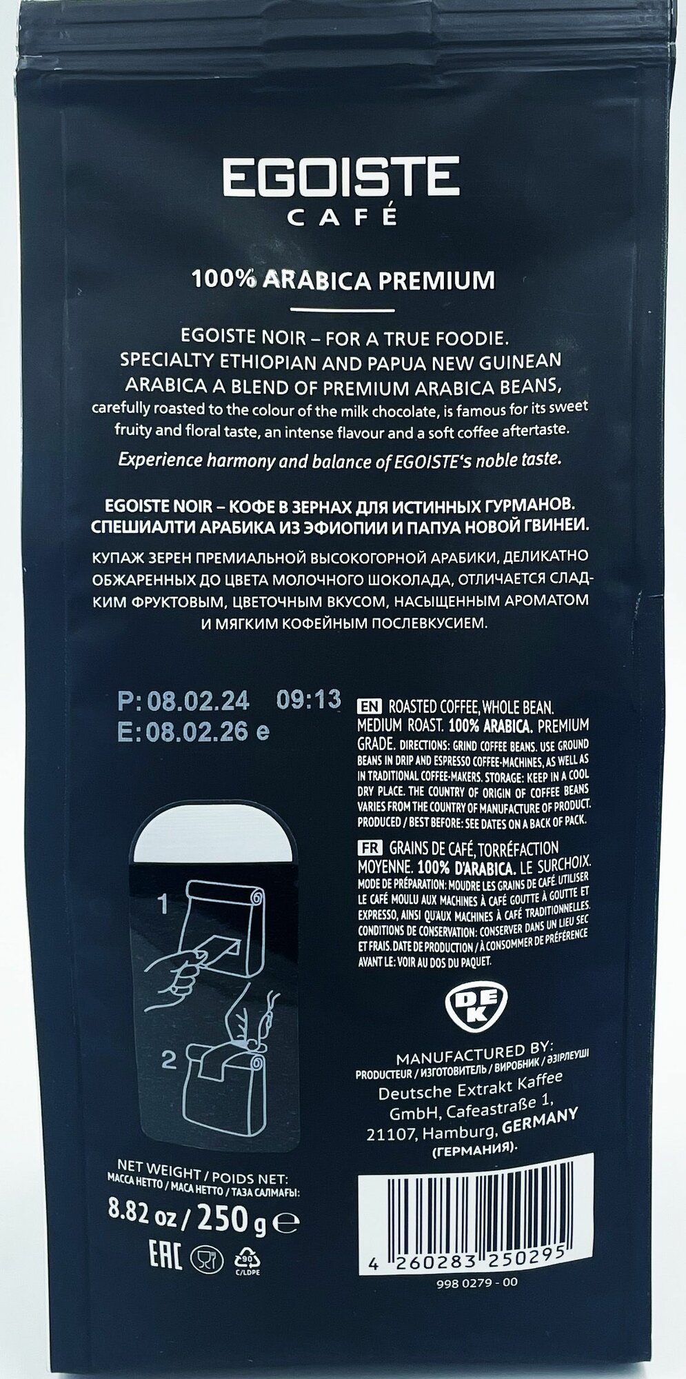 Кофе в зернах "Egoiste Noir", 2 штуки по 250 грамм