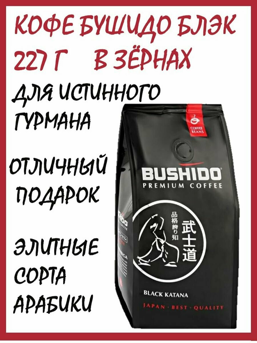 Кофе в зернах натуральный жареный BUSHIDO Black Katana, арабика 100 %, 227 гр.