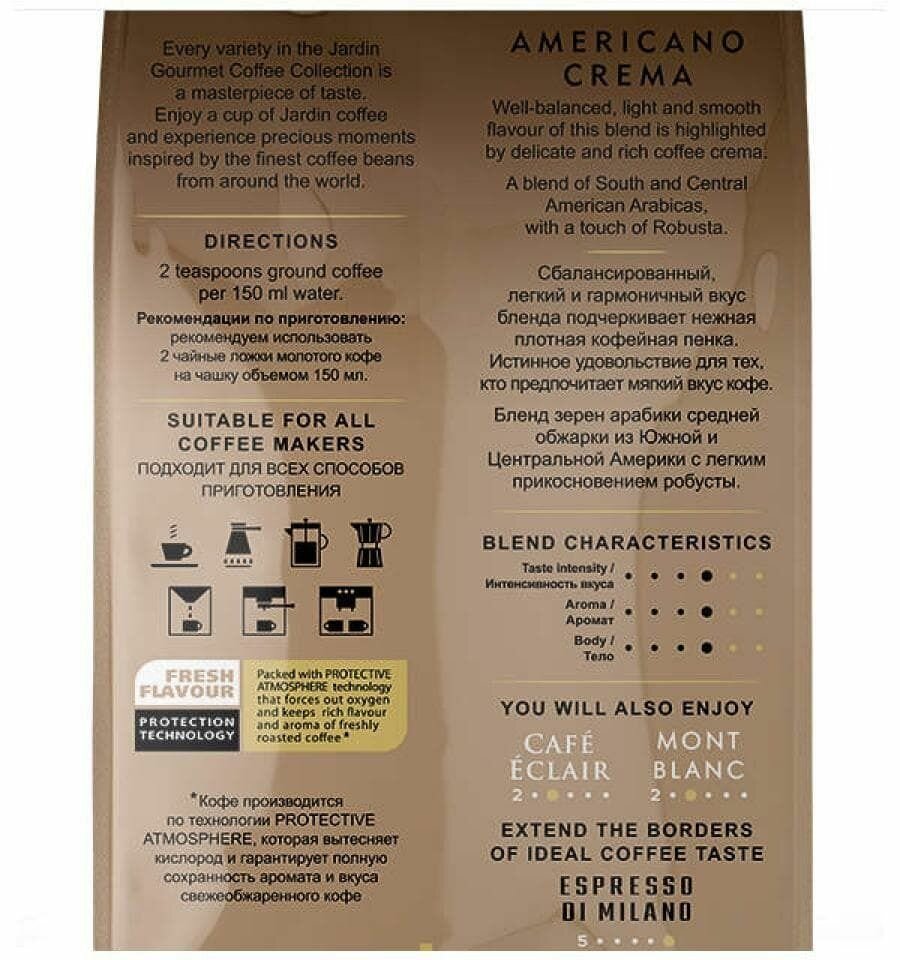 Кофе в зернах Jardin Americano Crema (Жардин Американо Крема), 250г (комплект 4 шт.) 6005527