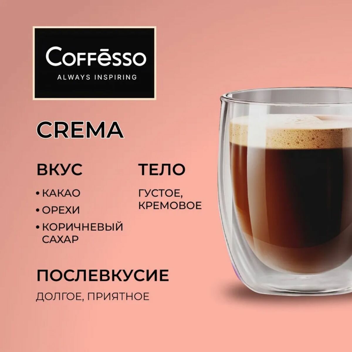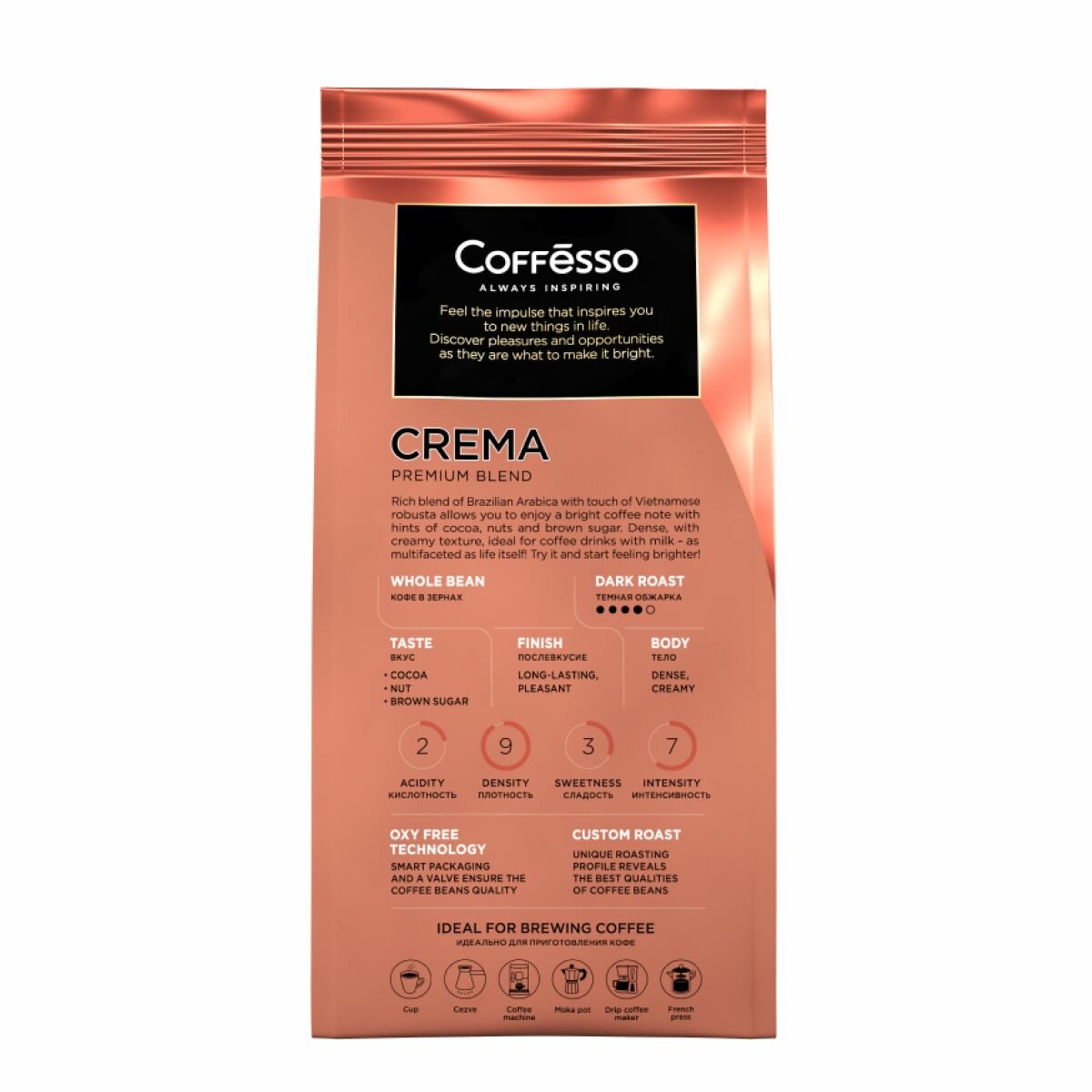 Кофе Coffesso "CREMA" в зернах, мягкая упаковка 250г интересное: