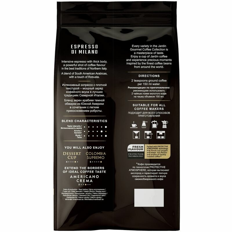 Кофе в зернах Jardin Espresso Di Milano, арабика, робуста, 250 гр. х 4 шт.