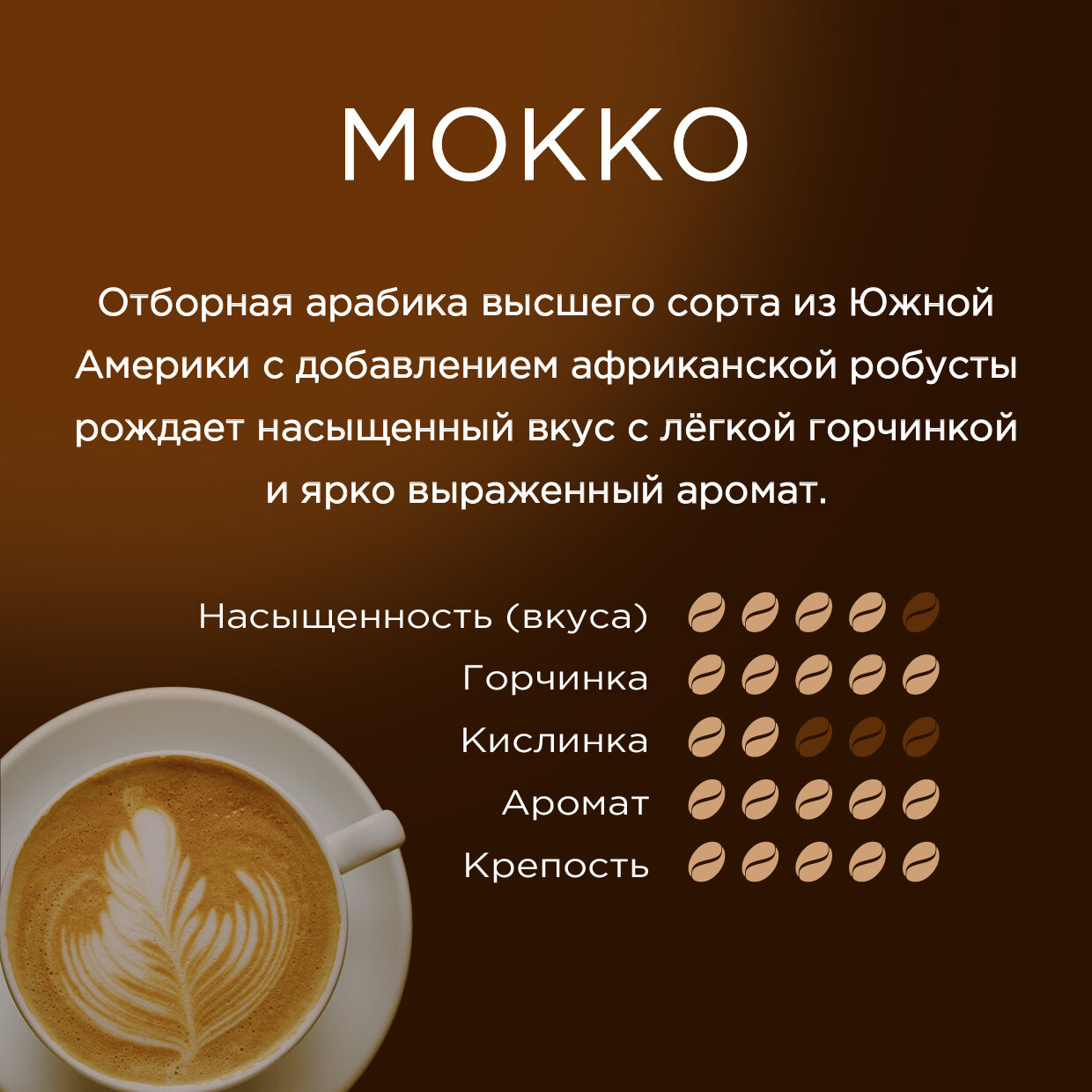 Кофе натуральный жареный в зернах мокко, в пакете 250