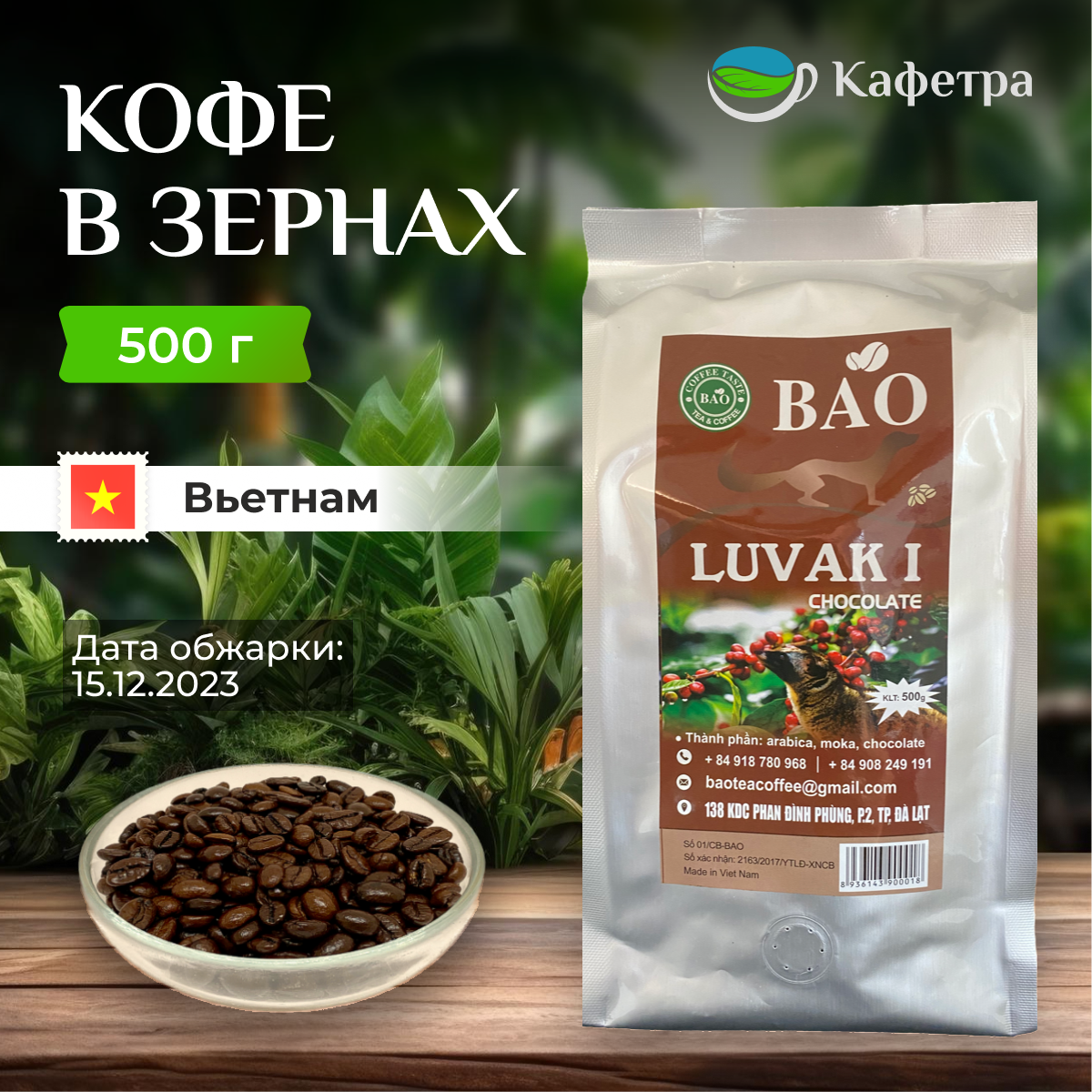Купить Вьетнамский кофе в зернах Шоколадный Лювак Ай (Chocolate Luvak I) - BAO - 500г