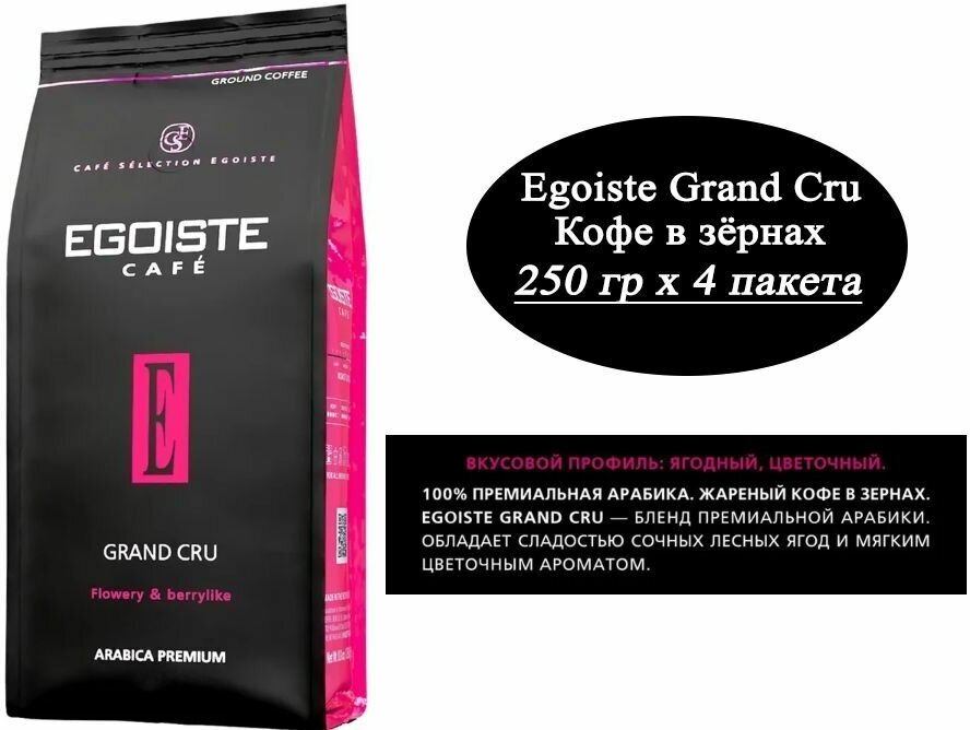 Купить Кофе в зернах натуральный, жареный EGOISTE GRAND CRU Арабика 100% (Нидерланды) 250 гр. х 4 шт.