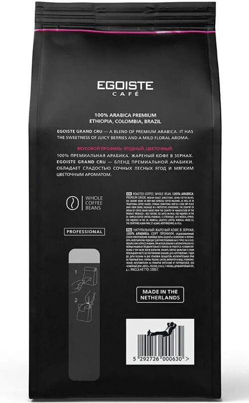 СохранитьКофе в зернах натуральный, жареный EGOISTE GRAND CRU Арабика 100% (Нидерланды) 250 гр. х 4 шт. интересное: