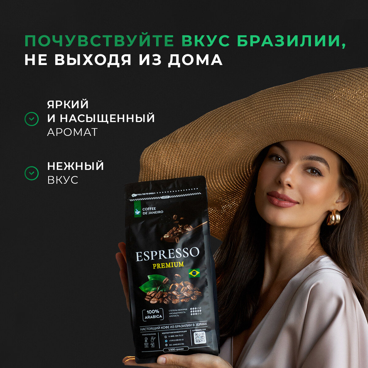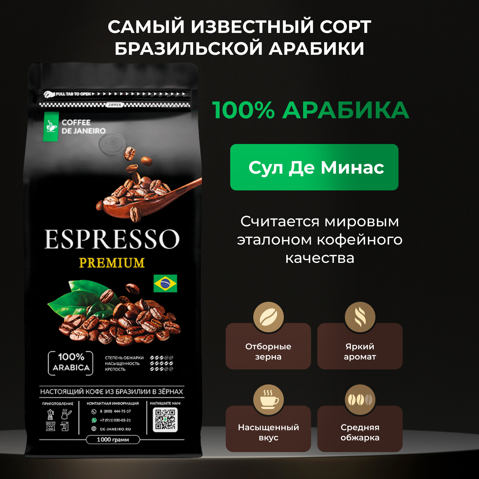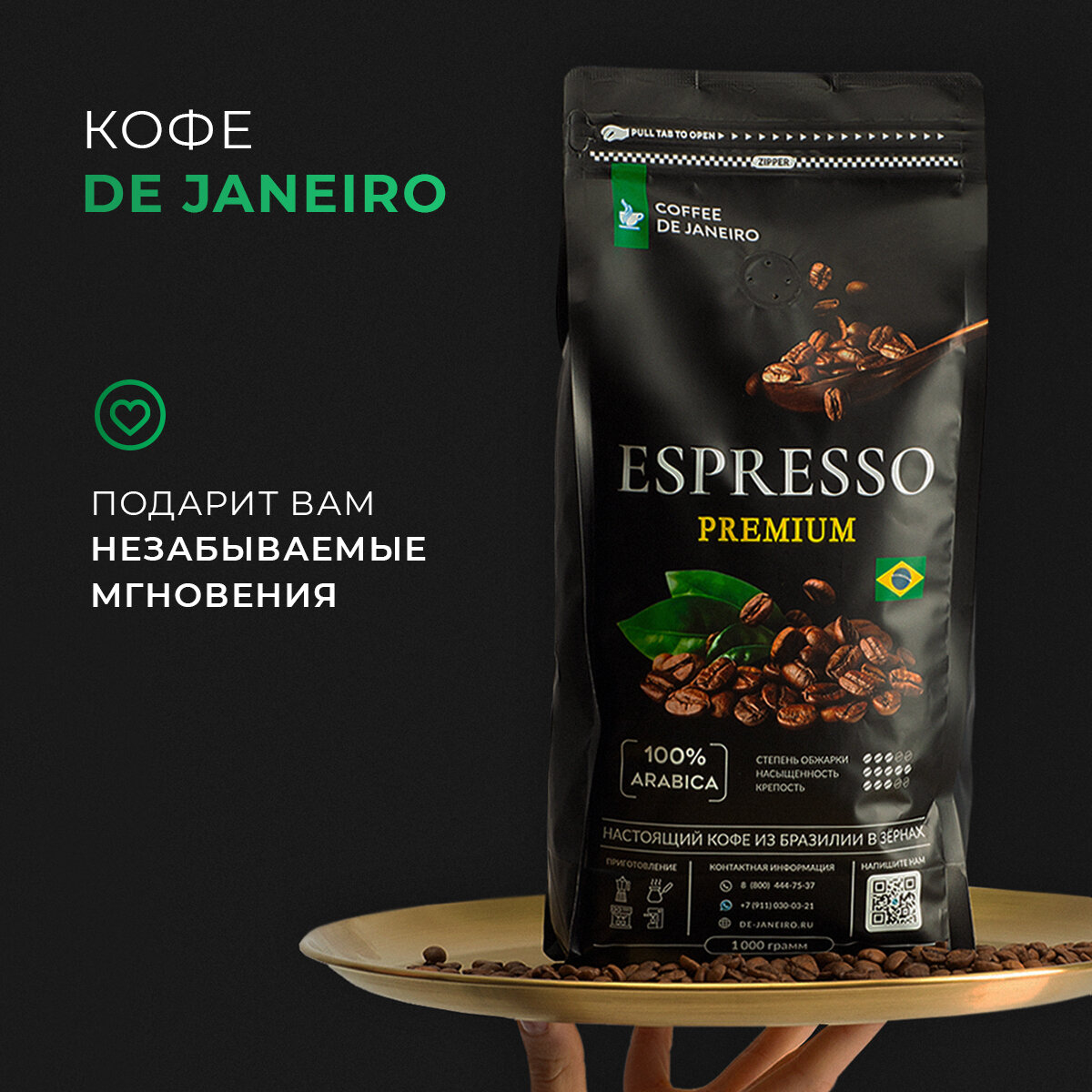 Кофе в зернах 1 кг 100% Арабика DE JANEIRO ESPRESSO PREMIUM (Бразилия, Сул де Минас), свежеобжаренный зерновой кофе интересное: