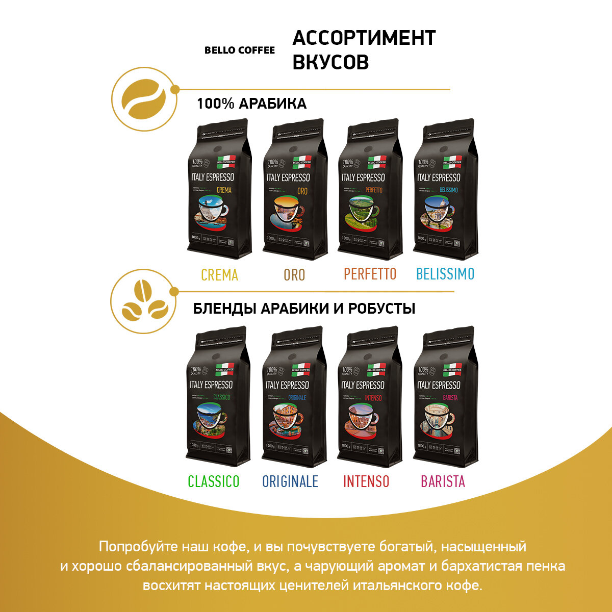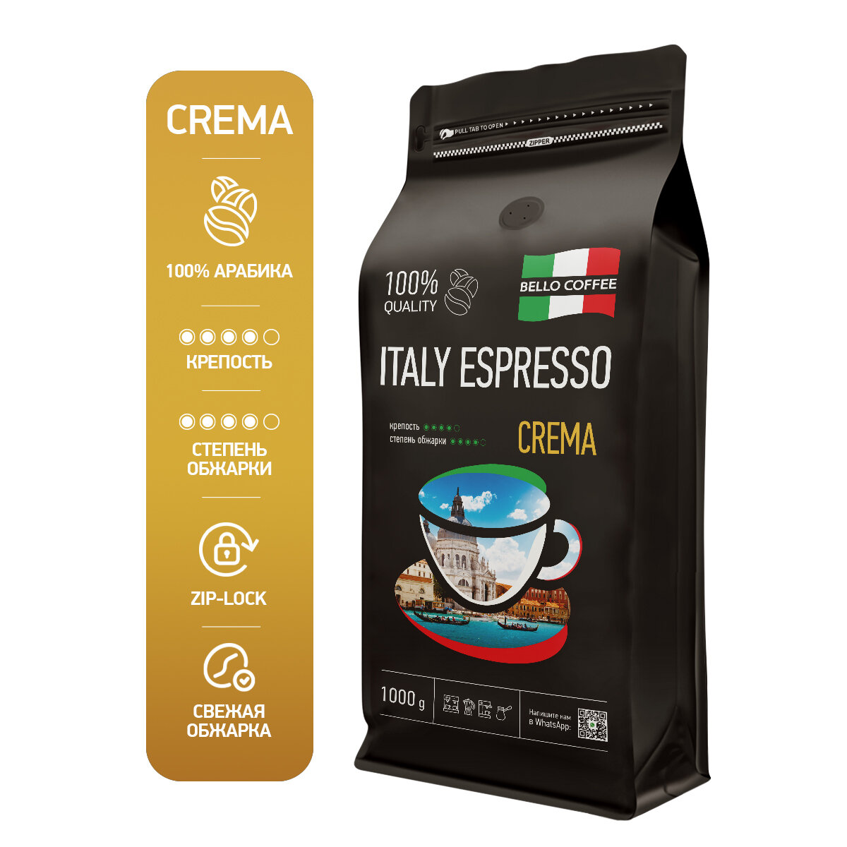 Кофе в зёрнах 1 кг BELLO COFFEE ITALY ESPRESSO CREMA, 100% Арабика, кофе зерновой интересное: