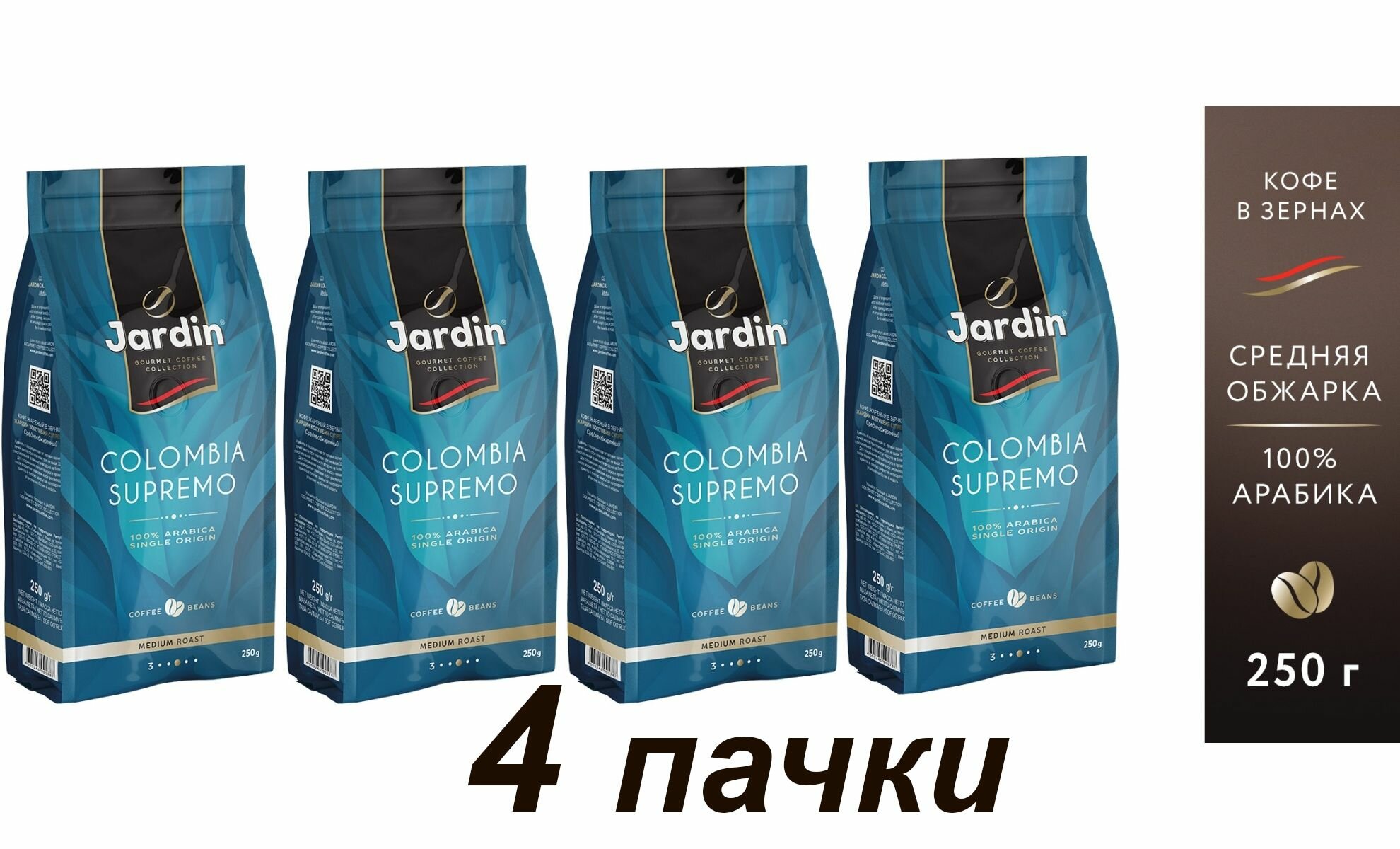 Купить Кофе в зернах Jardin Columbia Supremo 100% арабика, 250 гр. х 4 шт.
