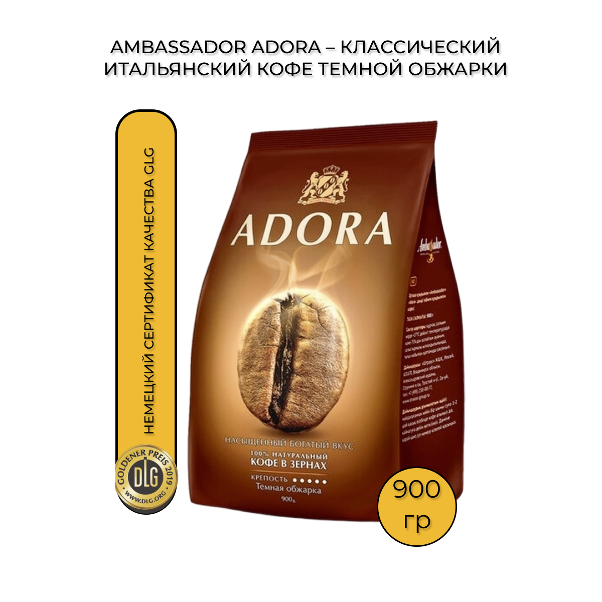 Кофе в зернах Ambassador Adora, темная обжарка, 900 г