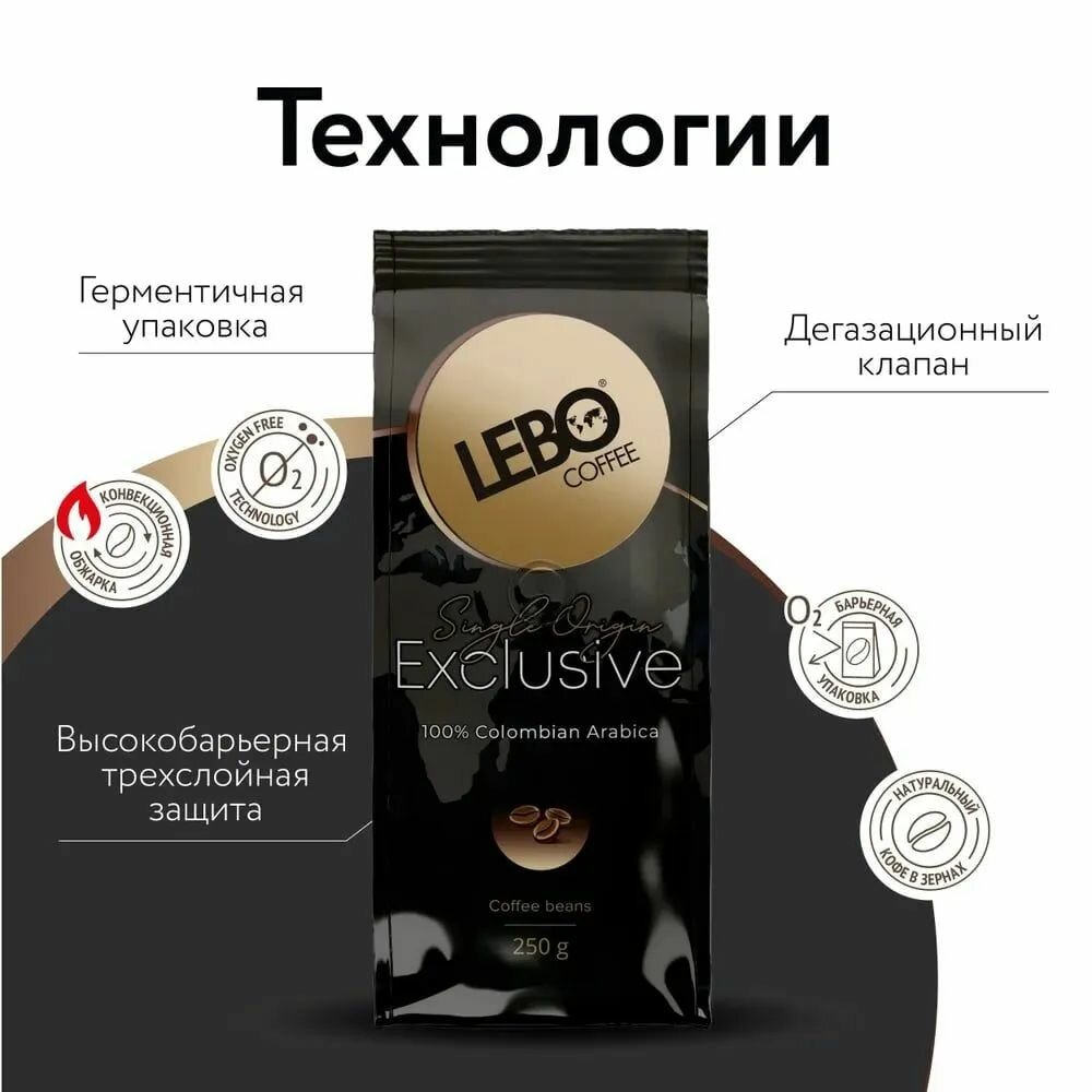 Кофе в зернах Lebo "Exclusive", Арабика 100%, средняя обжарка, 250г
