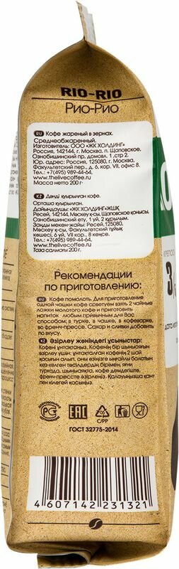 Живой кофе Рио-Рио в зернах 200 гр интересное: