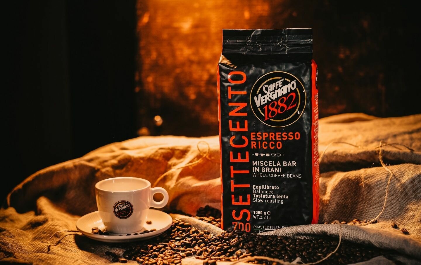Купить Кофе в зернах Vergnano Settecento Ricco, 1кг, средняя, средняя обжарка / Вергнано Сетточенто Рикко / Натуральный жареный зерновой кофе