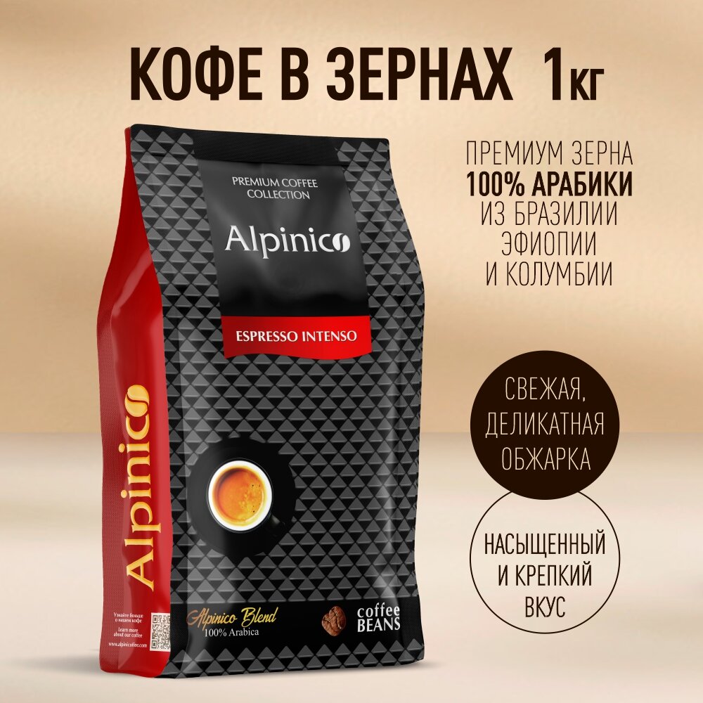 Кофе в зернах Alpinico ESPRESSO INTENSO, 100% Арабика премиум, темной обжарки, кофе в зернах 1 кг интересное: