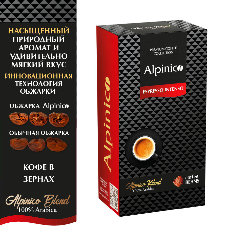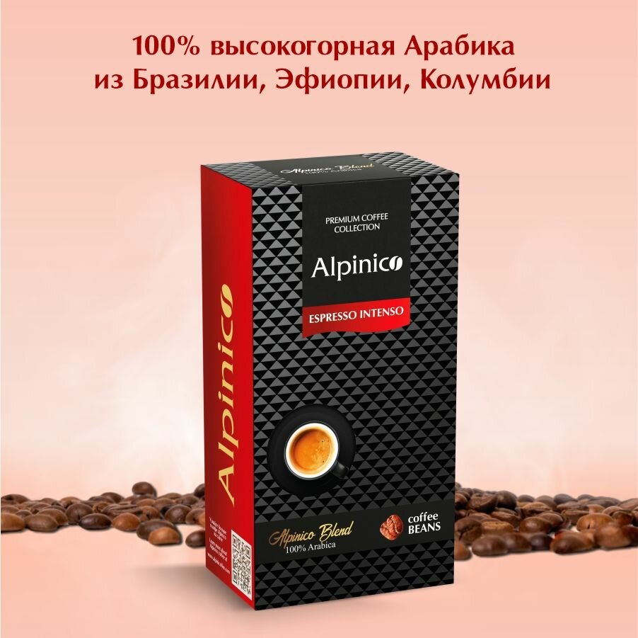 Кофе в зернах Alpinico ESPRESSO INTENSO, 100% Арабика премиум, темной обжарки, 500 г / зерновой кофе интересное: