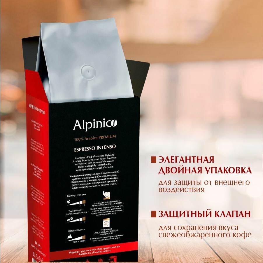 Купить Кофе в зернах Alpinico ESPRESSO INTENSO, 100% Арабика премиум, темной обжарки, 500 г / зерновой кофе