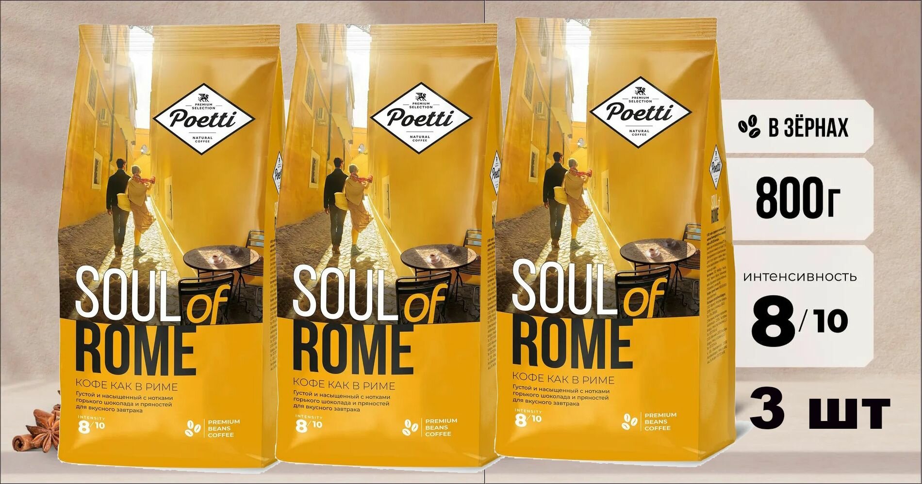Купить Кофе натуральный жареный зерновой POETTI (ex-PAULIG) SOUL of ROME 800 гр. х 3 шт.