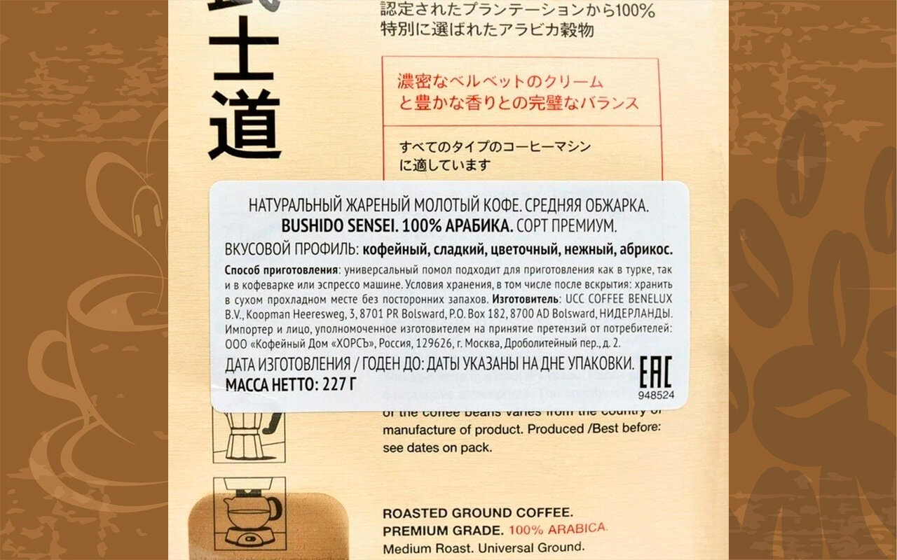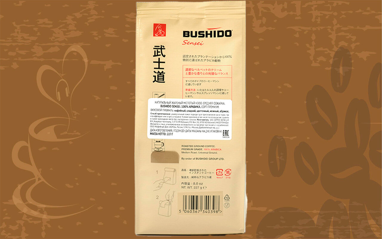 Кофе молотый Bushido Sensei, 227 г, вакуумная упаковка интересное: