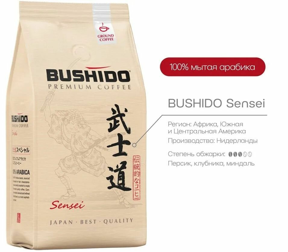 Кофе молотый BUSHIDO SENSEI 227 гр. х 3 шт. интересное: