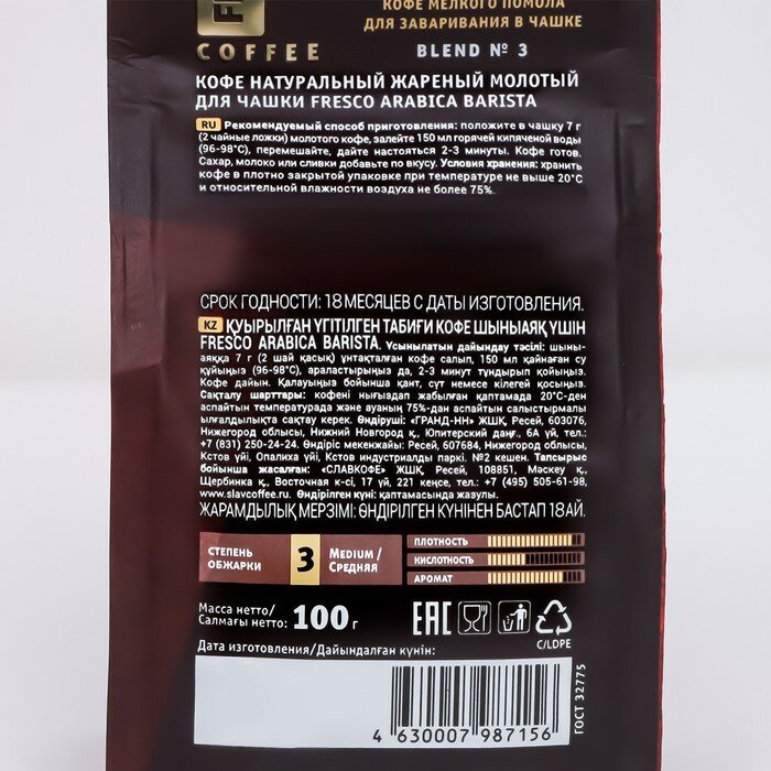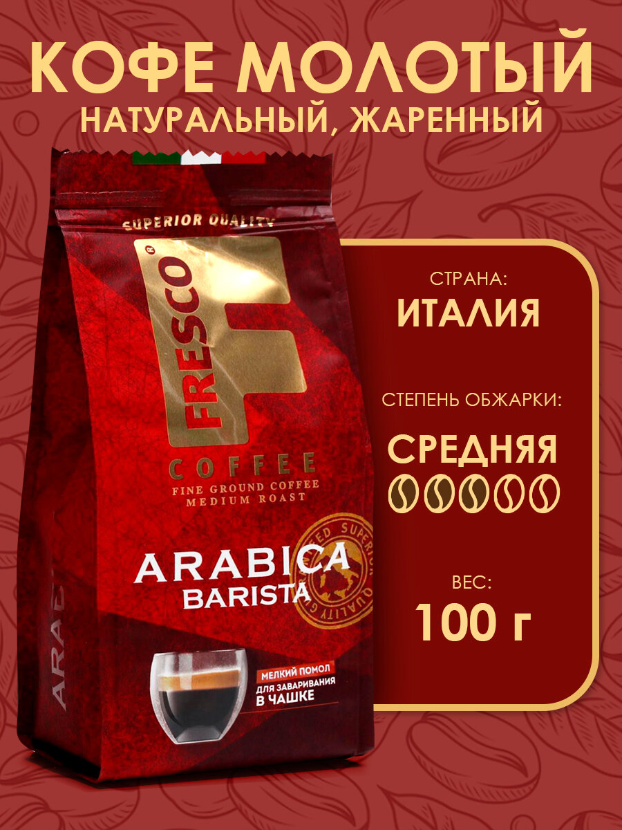 Кофе молотый FRESCO Arabica Barista 100г для заваривания в чашке, турке интересное: