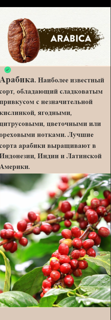 | Способ заваривания | аэропресс, гейзерная кофеварка (мока), джезва, кемекс, пуровер, сифон, френч-пресс, чашка, эспрессо |