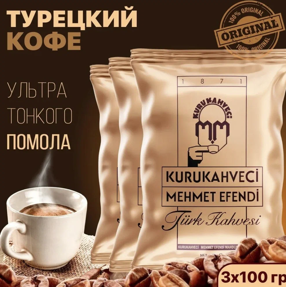 Купить Кофе молотый арабика 100% KURUKAHVECI MEHMET EFENDI Турция , 3 шт. по 100г