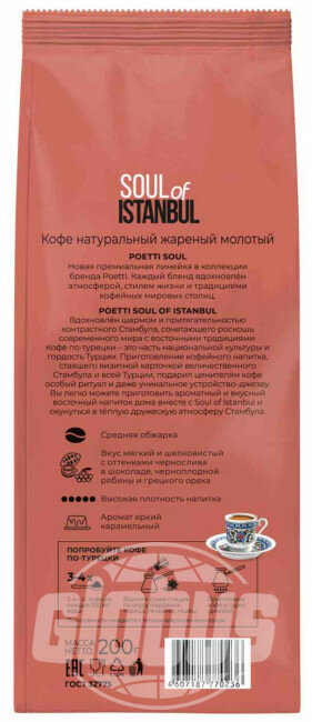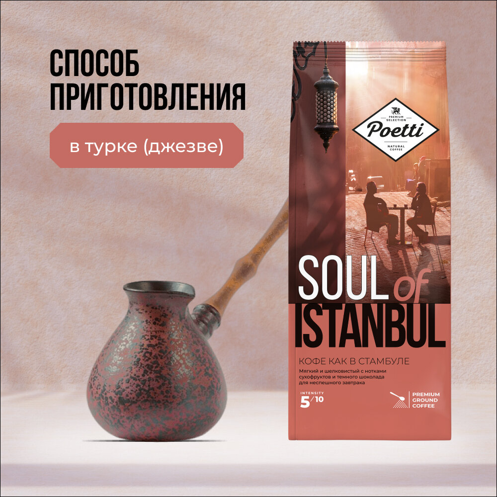 Кофе молотый Poetti (ex-PAULIG) Soul of Istanbul с нотками сухофруктов и тёмного шоколада, натуральный, жареный 200 гр. х 4 шт.