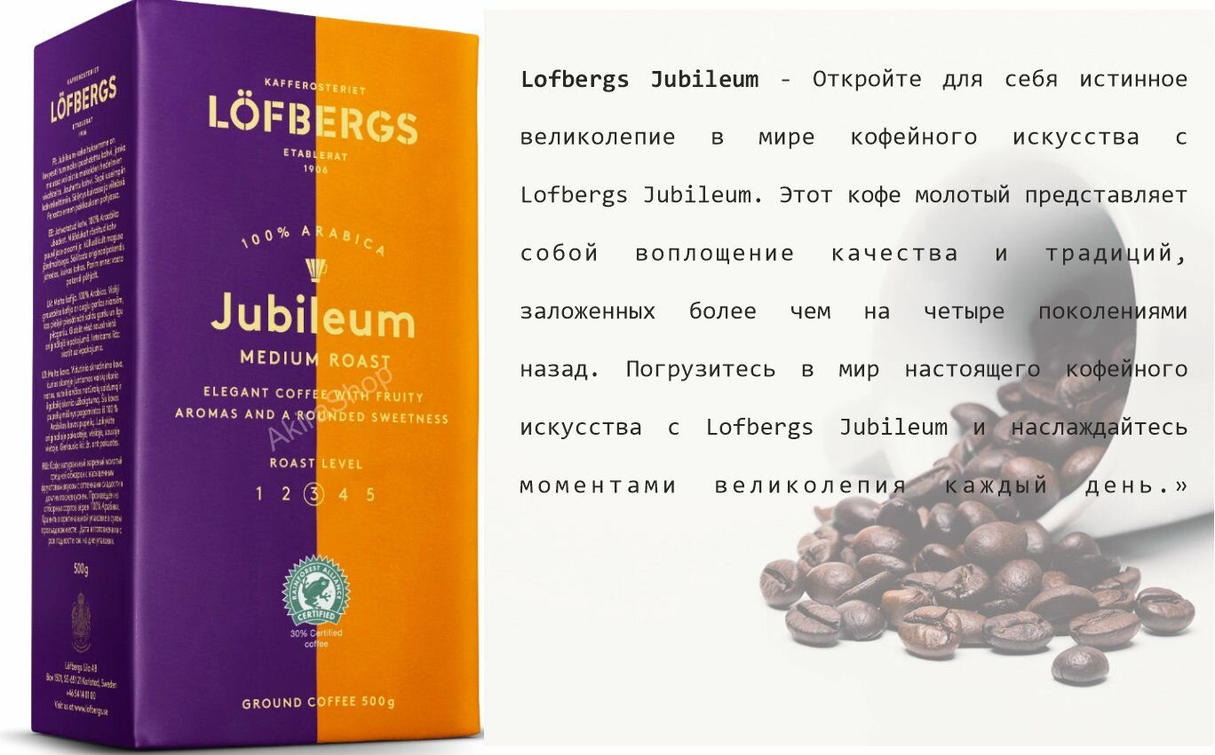 Ниже Вы можете прочитать отзывы на Lofbergs Молотый кофе Lofbergs Jubileum 500гр, ознакомится с подробными характеристиками, посмотреть интересные обзоры и фотографии на Lofbergs Молотый кофе Lofbergs Jubileum 500гр.
