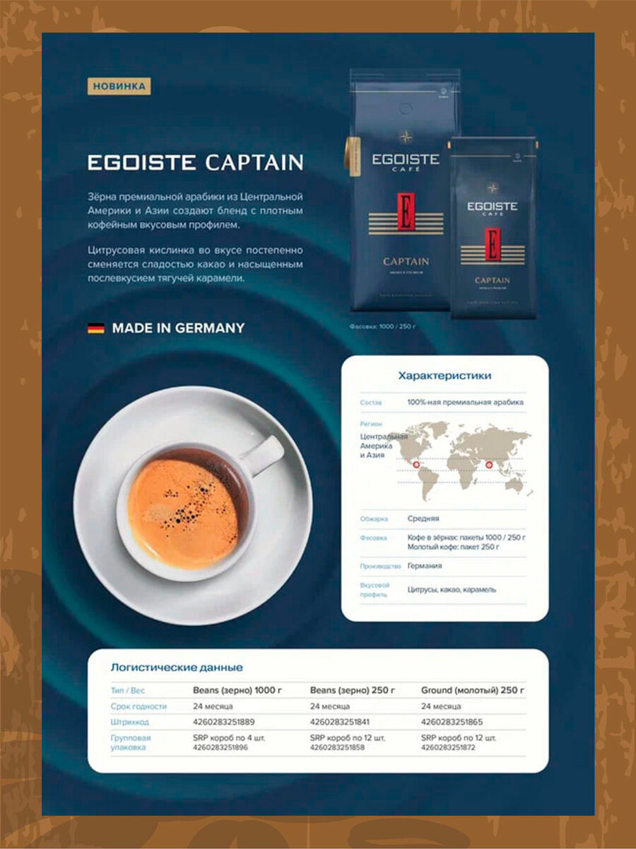 EGOISTE Captain Кофе молотый полимерная упаковка 250г. интересное:
