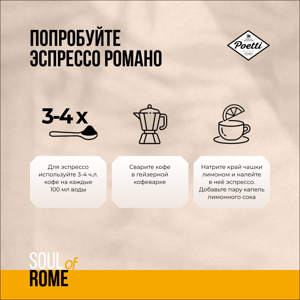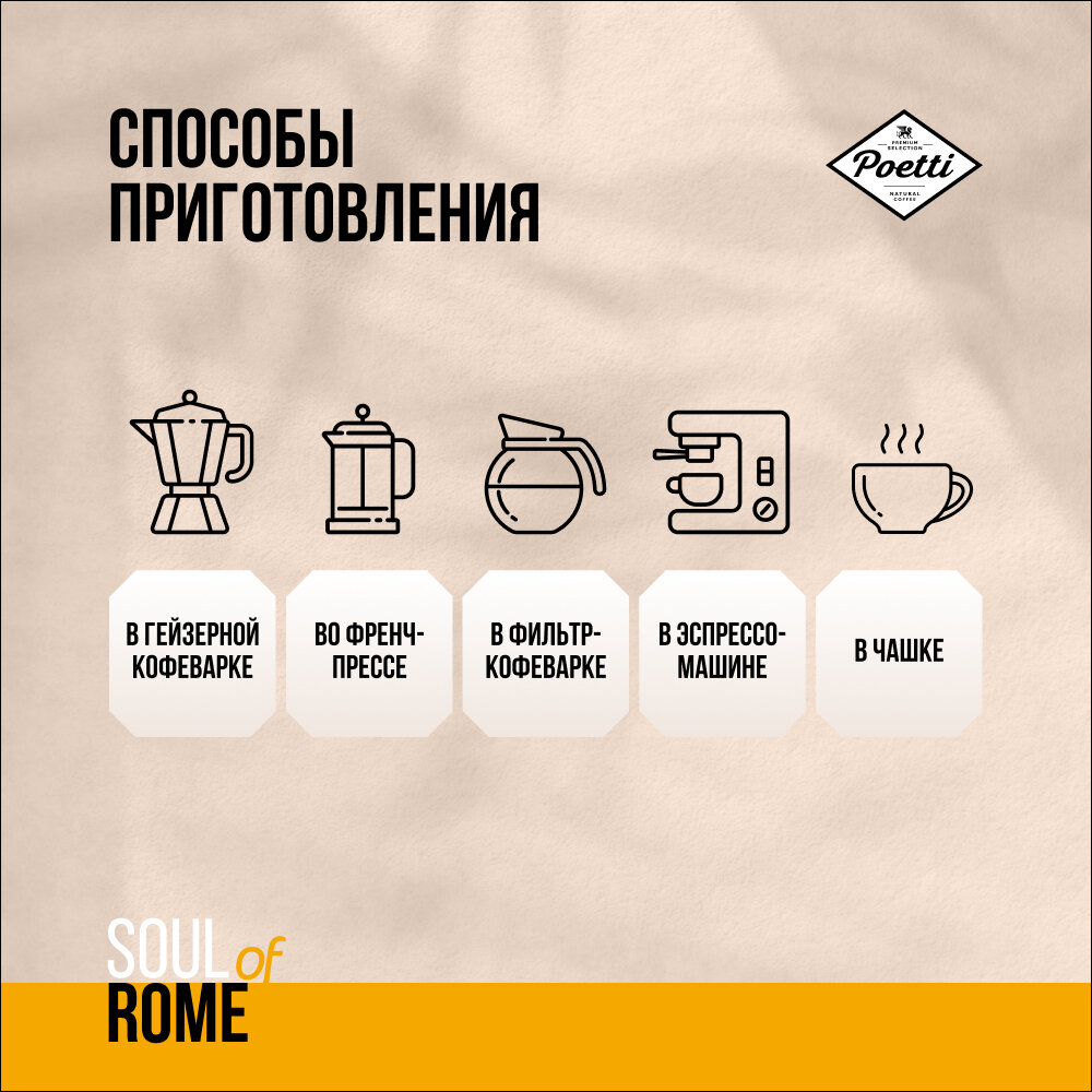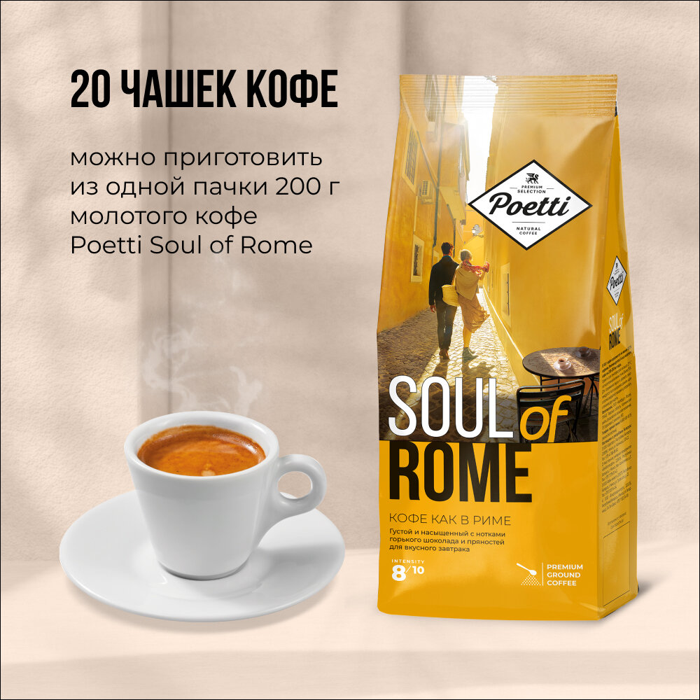 Кофе натуральный жареный молотый Poetti Soul of Rome 200 гр интересное: