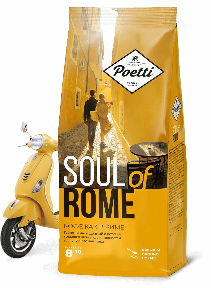 Кофе молотый Poetti (ex-PAULIG) Soul of Rome с нотками горького шоколада и пряностей, натуральный, жареный 200 гр. х 4 шт.